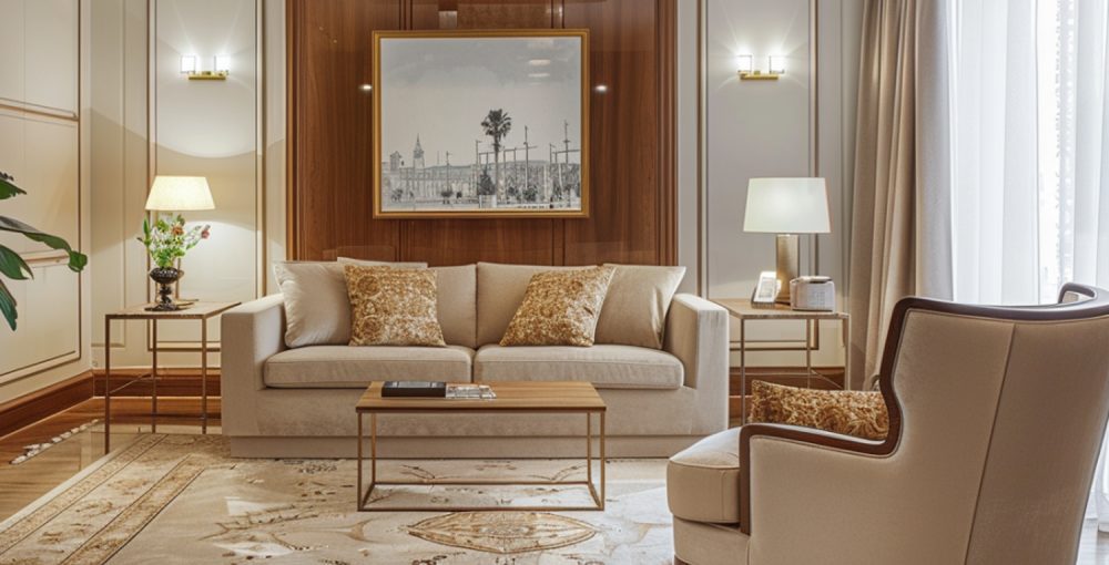 Klasyczny zestaw wypoczynkowy w luksusowym salonie