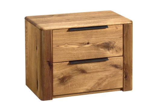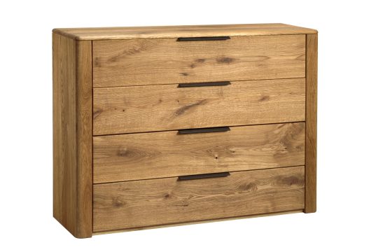 - Naturalne piękno drewna – Fronty z sękatego dębu oraz fornirowane korpusy tworzą spójną, estetyczną całość. Olej natura dodatkowo wydobywa strukturę drewna i chroni je na lata.
