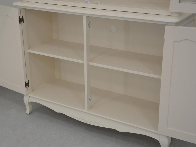 - Styl prowansalski – kredensy z frezowanymi frontami i stylizowanymi uchwytami.
