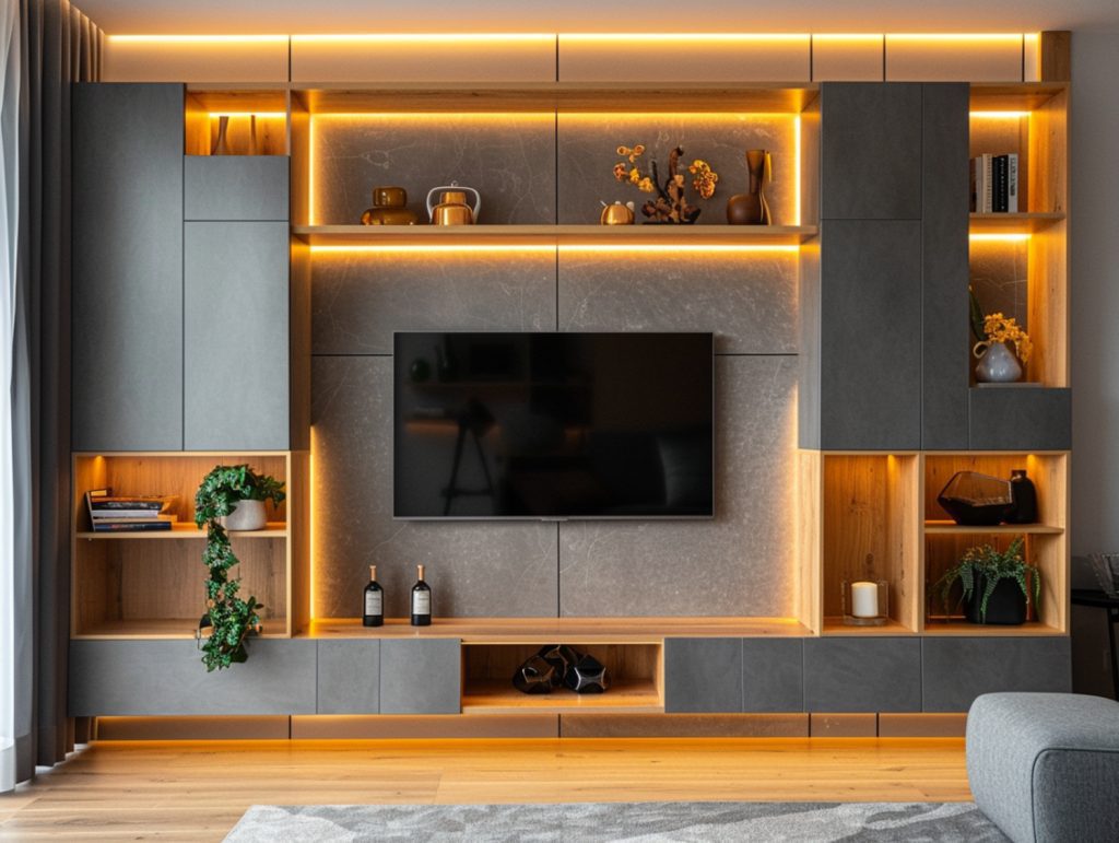 Oświetlenie odgrywa kluczową rolę w budowaniu nastroju wnętrza. W meblościankach nowoczesnych coraz częściej stosuje się systemy LED, które pozwalają na stworzenie dynamicznych efektów świetlnych oraz podkreślenie architektonicznych detali.