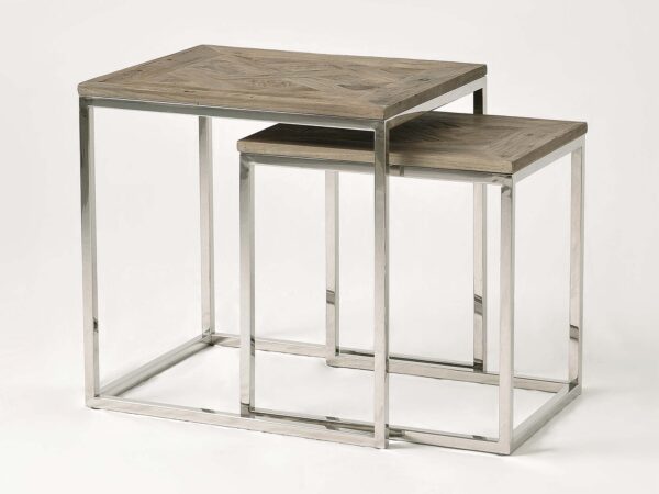 Stoliki Zestaw Drewniane Intarsja Rama Stalowa – Luxe