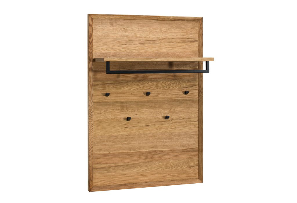 Prosty i elegancki panel do przedpokoju Roma zrobiony z najlepszego gatunku materiałów w tym drewna dębowego i forniru. Dzięki temu mebel jest trwały, praktyczny i bardzo stylowy. Mocna forma oraz eleganckie, nowoczesne wykończenie sprawią, że wieszak do przedpokoju z półką fenomenalnie uatrakcyjni każde wnętrze. Roma ma funkcjonalne wieszaki, które stanowią idealne miejsce dla kurtek i płaszczy. Co więcej panel posiada półkę, gdzie z powodzeniem zmieszczą się rękawiczki, szalik czy czapka lub kapelusz. Oprócz tego Roma ma również praktyczny metalowy wieszak, gdzie swobodnie może zawisnąć parasol.