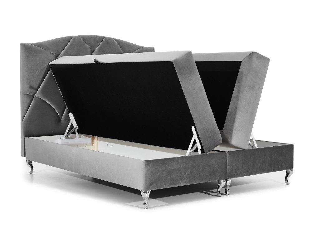 Przede wszystkim luksusowe łóżko tapicerowane KAZUNO to doskonale zaprezentuje się we wnętrzu, a przy tym zapewni maksymalny komfort użytkowania. Co więcej model posiada stylowe przeszycia umieszczone na zagłówku. Tworzą one oryginalny wzór przypominający asymetryczne romby. Ponadto prezentowany mebel posiada w zestawie 2 pojemniki na pościel wyposażone w automaty sprężynowe, które są otwierane z obu stron.