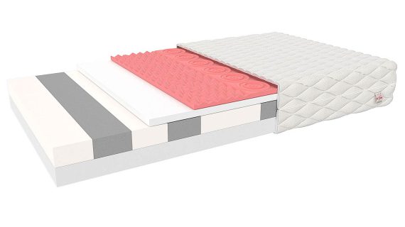 - 7 Strefowa Pianka Wysoko-Elastyczna HR H30 –Dzieli materac na 7 stref, zapewniając doskonałe podparcie kręgosłupa. Posiada niejednolitą strukturę komórkową, dzięki czemu uzyskuje lepsze parametry podtrzymywania ciała, komfortu oraz sprężystości. Zapewnia idealne dopasowanie materaca do kształtu ciała, pozostając przy tym niezwykle lekką. Materiał ten wyróżnia się niezwykłą trwałością i odpornością na odkształcenia. Trwałość pianki HR określa się nawet jako o 40% wyższą od tradycyjnej pianki poliuretanowej o tej samej gęstości, dodatkowo odzyskuje ona swój pierwotny kształt dwa razy szybciej. Oznacza to, że o wiele szybciej reaguje na zmianę pozycji ciała, co znacznie poprawia komfort spania.