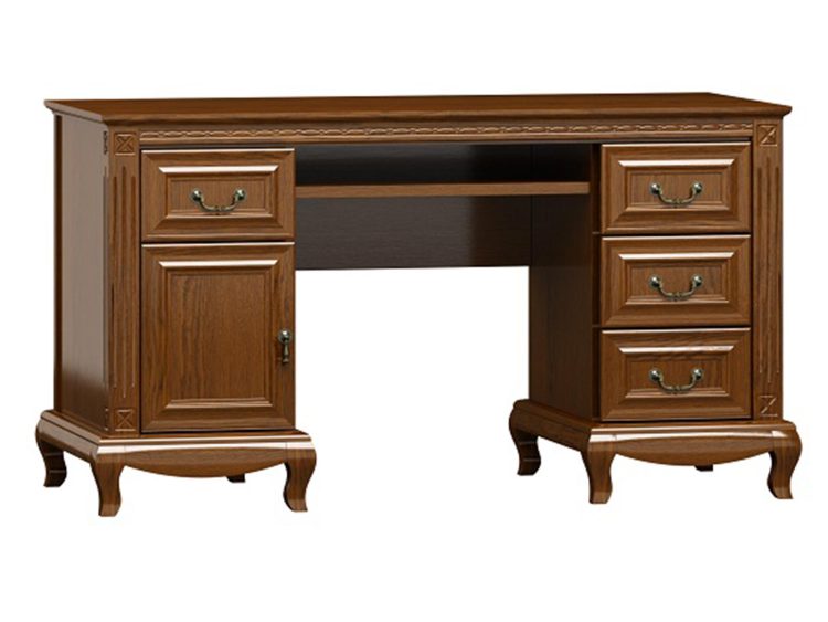 Krzesło, równie stylowe jak biurko, zapewnia komfort podczas długich godzin pracy. Oparcie oraz siedzisko są starannie wykończone, a całość stanowi harmonijną kompozycję, która nadaje pomieszczeniom ciepły i przytulny charakter.
