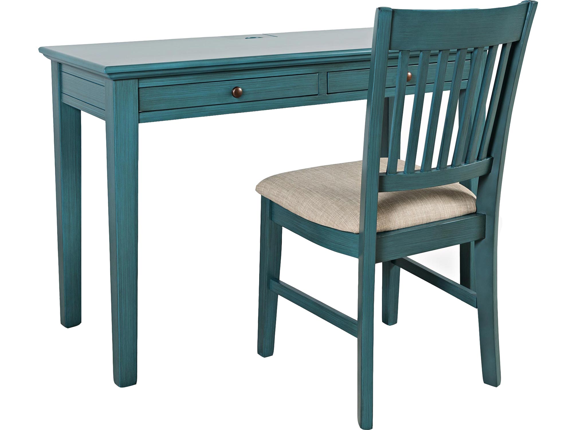 Zestaw Avola to idealne połączenie estetyki i funkcjonalności. Biurko o klasycznym wyglądzie w ciemnoniebieskim kolorze wyróżnia się subtelnymi przetarciami w stylu shabby chic, które nadają mu charakteru i elegancji. Wbudowane gniazdo USB w biurku sprawia, że zestaw staje się wyjątkowo funkcjonalny, umożliwiając łatwe podłączenie urządzeń elektronicznych. Krzesło dopełnia całość, zapewniając komfort i odpowiednie wsparcie dla pleców, co jest istotne w czasie wielogodzinnej pracy.