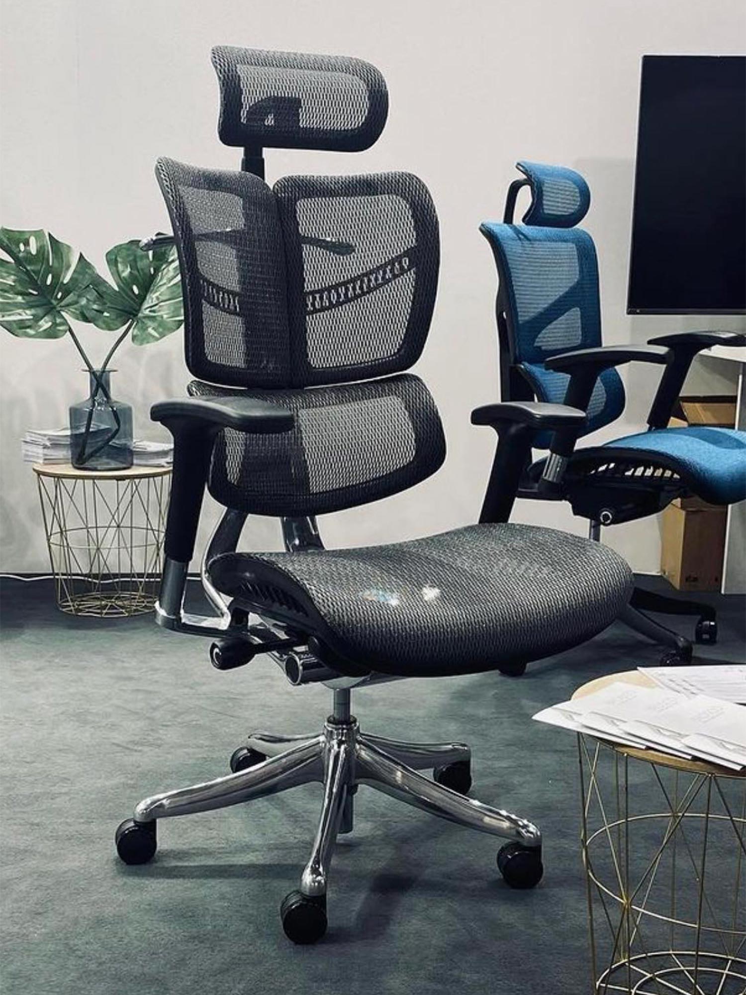 - Prawdziwa ergonomia — trójstrefowe oparcie i dynamiczne lędźwie wspierają kręgosłup od rana do wieczora.