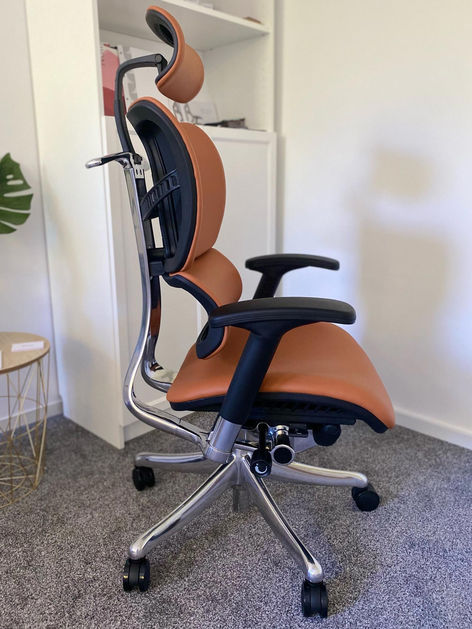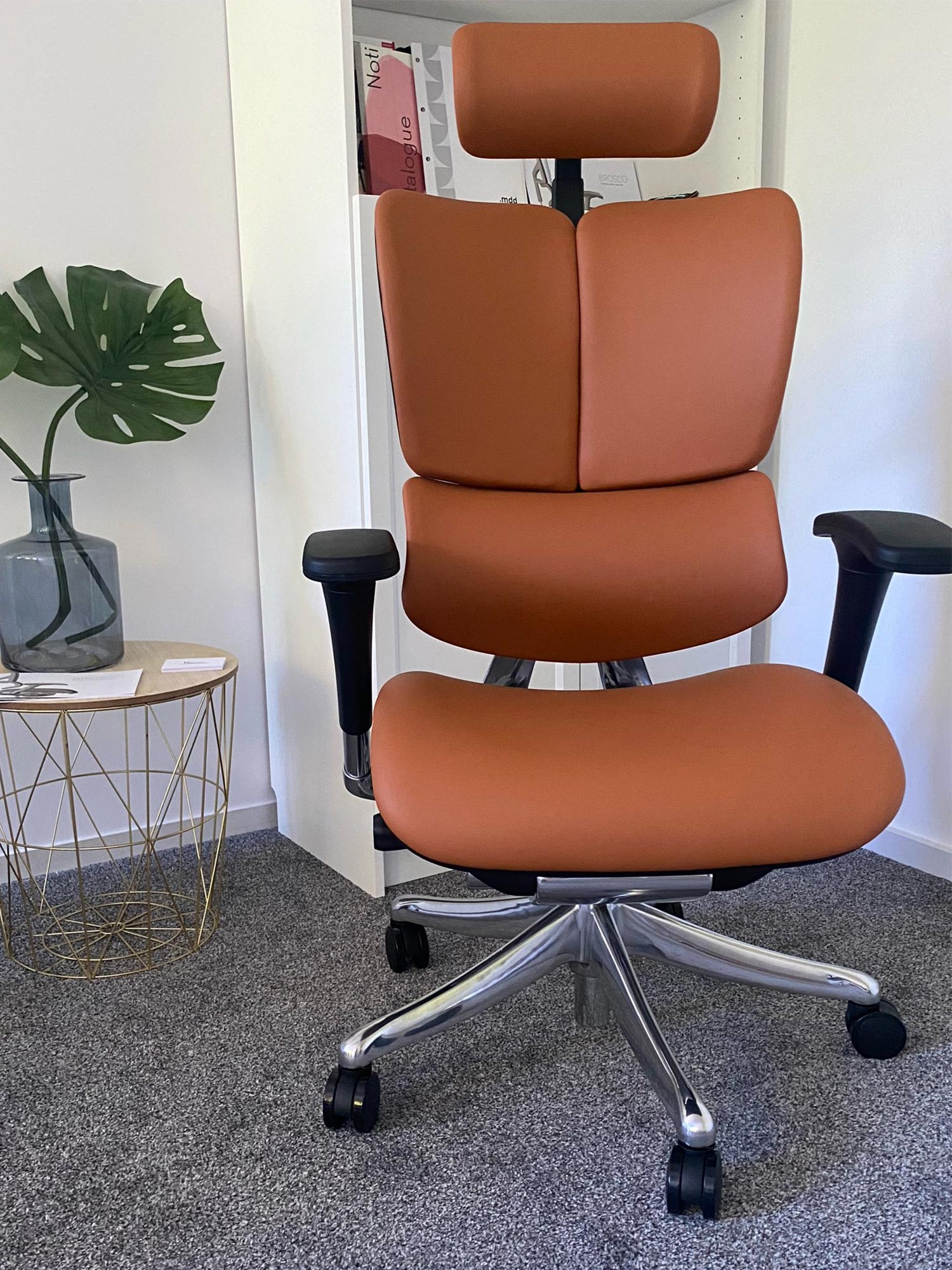 Fotel ERGOFLY Fly L-06 Brown został stworzony z myślą o osobach spędzających długie godziny przy biurku. Dzięki innowacyjnej konstrukcji łączy w sobie estetykę, elegancję i funkcjonalność, stając się nie tylko meblem biurowym, ale również prestiżowym elementem wnętrza. Skórzane wykończenie w odcieniu brązu nadaje mu ponadczasowego charakteru, który doskonale wpisuje się w nowoczesne biura i stylowe gabinety domowe.