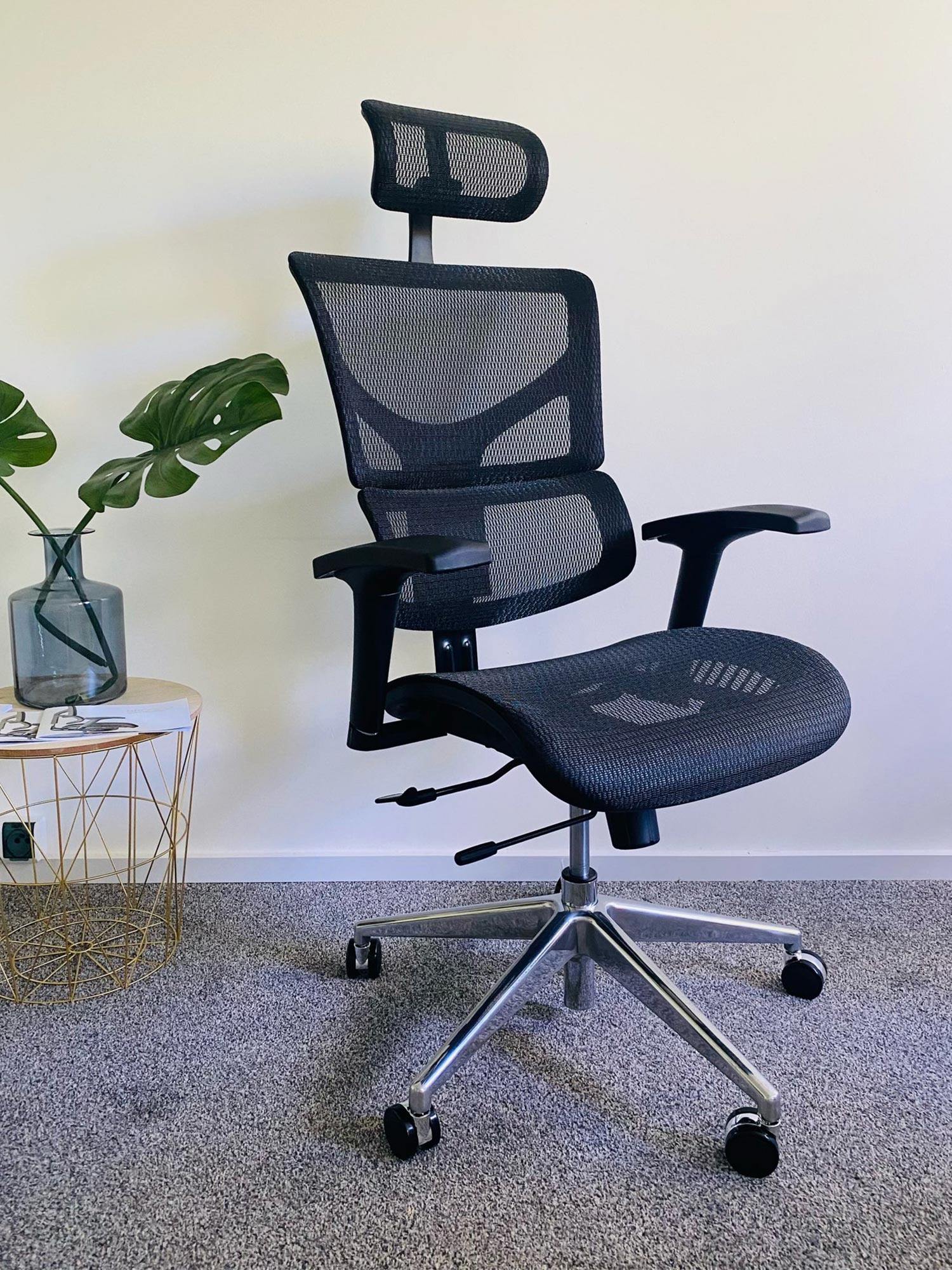 To fotel, który subtelnie porządkuje przestrzeń — dzięki ponadczasowemu wykończeniu w czerni — i jednocześnie aktywnie wspiera ciało. Oddychająca siatka, precyzyjne regulacje i nowoczesne rozwiązania (jak oddzielone podparcie lędźwiowe) sprzyjają koncentracji oraz pozwalają utrzymać zdrową postawę bez wysiłku. Jeżeli szukasz siedziska, które wygląda profesjonalnie i „pracuje” na Twoją wygodę — oto właściwy wybór.