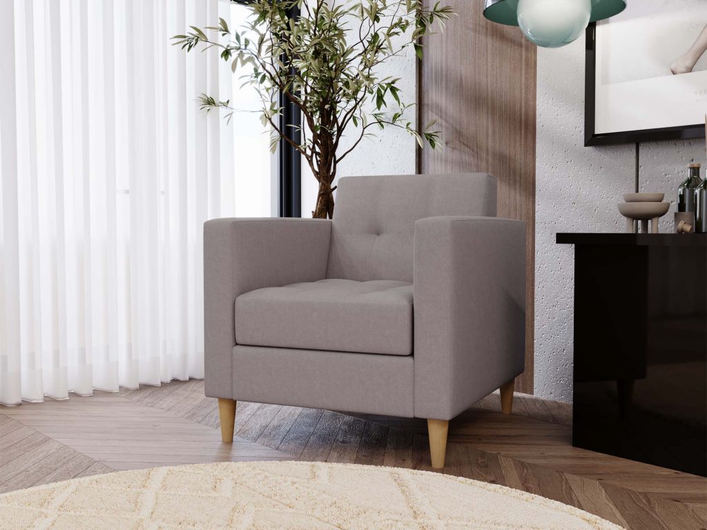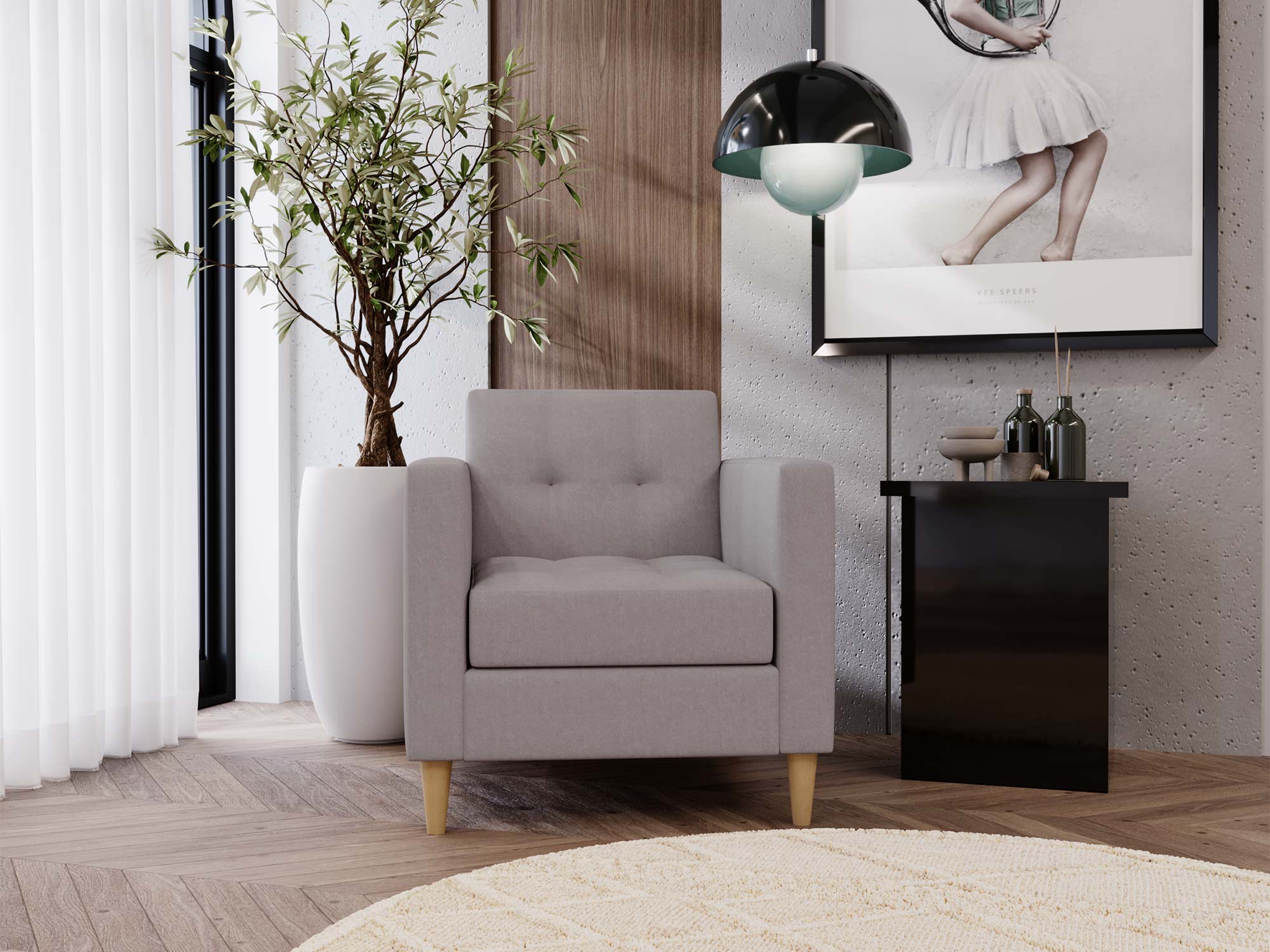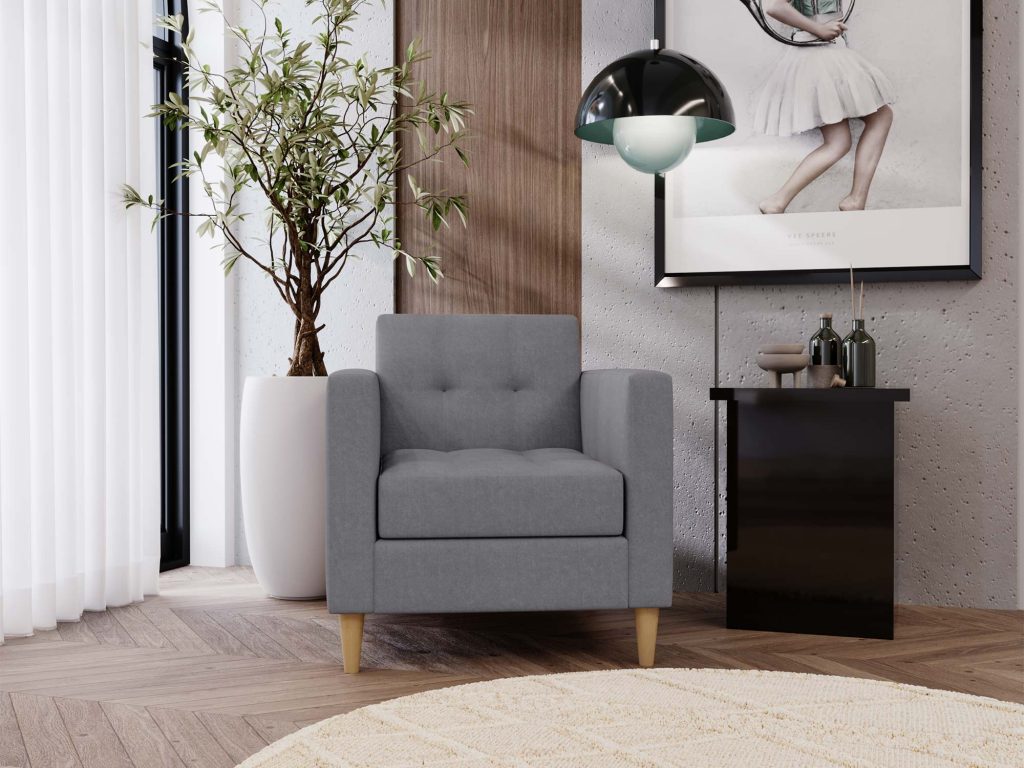 Fotel FANCY Szary Klasyczny Wygodny do Salonu to idealne połączenie komfortu, stylu i trwałości, które stworzy w Twoim salonie wyjątkową przestrzeń do wypoczynku. Dzięki eleganckiej formie i kompaktowym wymiarom, ten fotel stanie się ponadczasowym dodatkiem, wprowadzając do wnętrza elegancję i przytulność.
