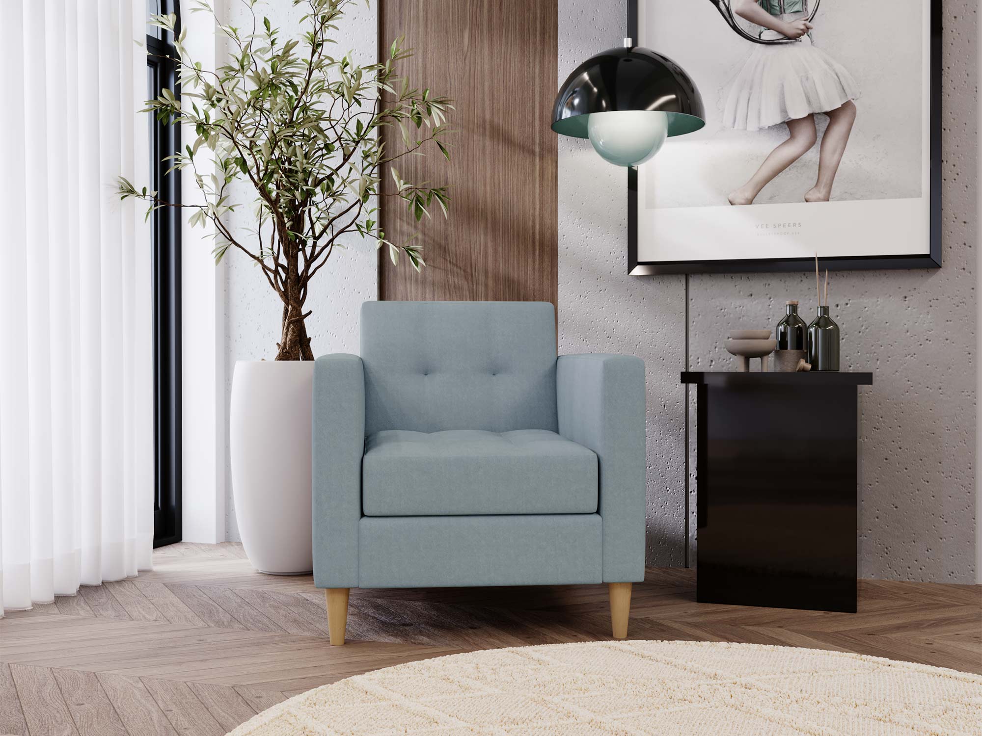 Fotel FANCY o wymiarach 54x70x76 cm jest zaprojektowany z myślą o maksymalnym komforcie siedzenia, idealnie wpisując się w nowoczesne wnętrza. Drewniane nóżki nadają mu lekkości i elegancji, a jednocześnie zapewniają stabilność i wytrzymałość na lata. Niezależnie od stylu aranżacji, fotel FANCY doskonale wkomponuje się w każde wnętrze, nadając mu wyjątkowego charakteru.