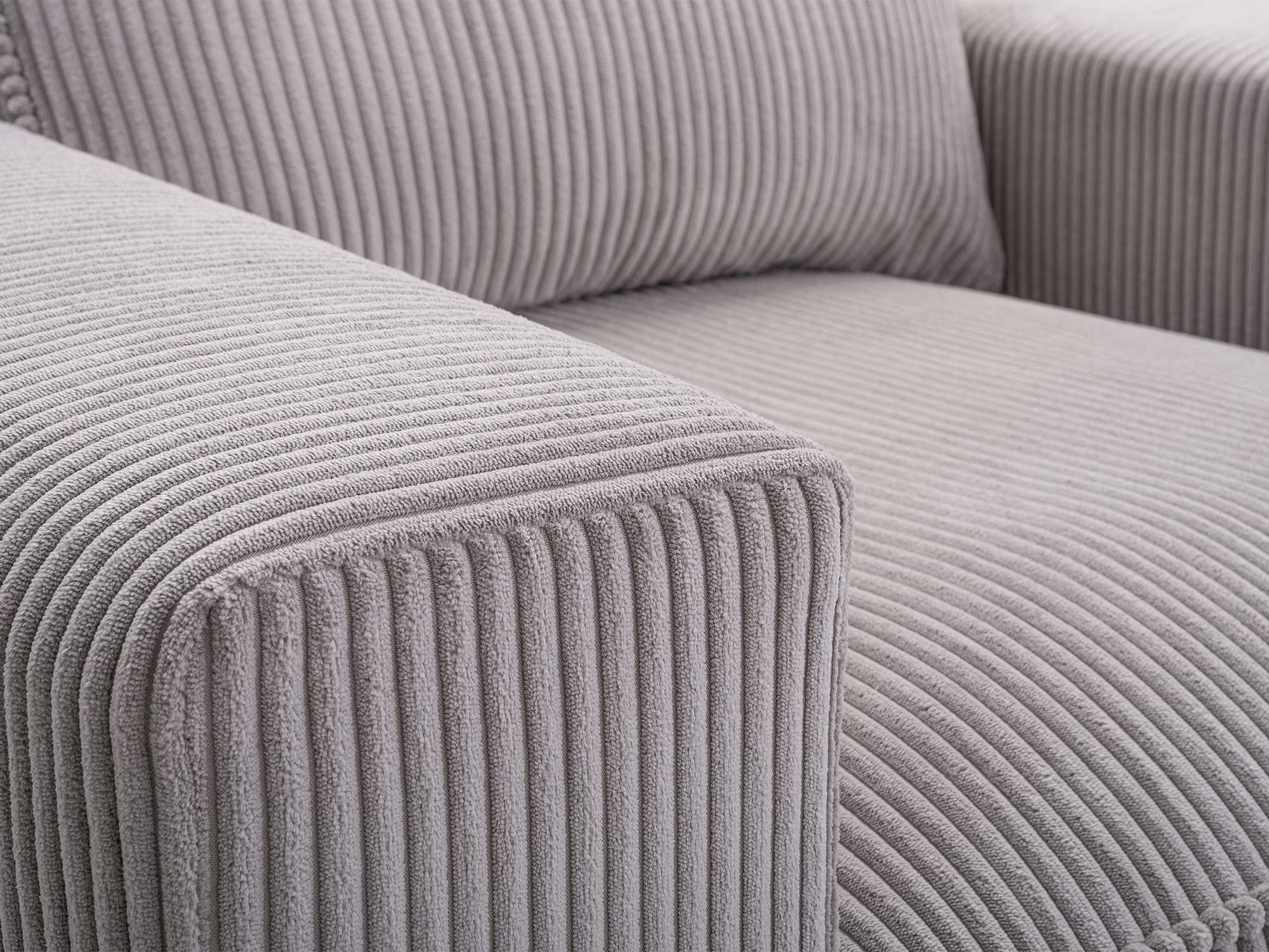 Nowoczesny charakter mebla podkreślają plastikowe nogi w czarnym kolorze, które dodają mu lekkości wizualnej i stabilności. Dzięki swojej wolnostojącej konstrukcji Vera doskonale wygląda w dowolnym miejscu – może stanąć przy ścianie lub pełnić funkcję centralnego punktu salonu.