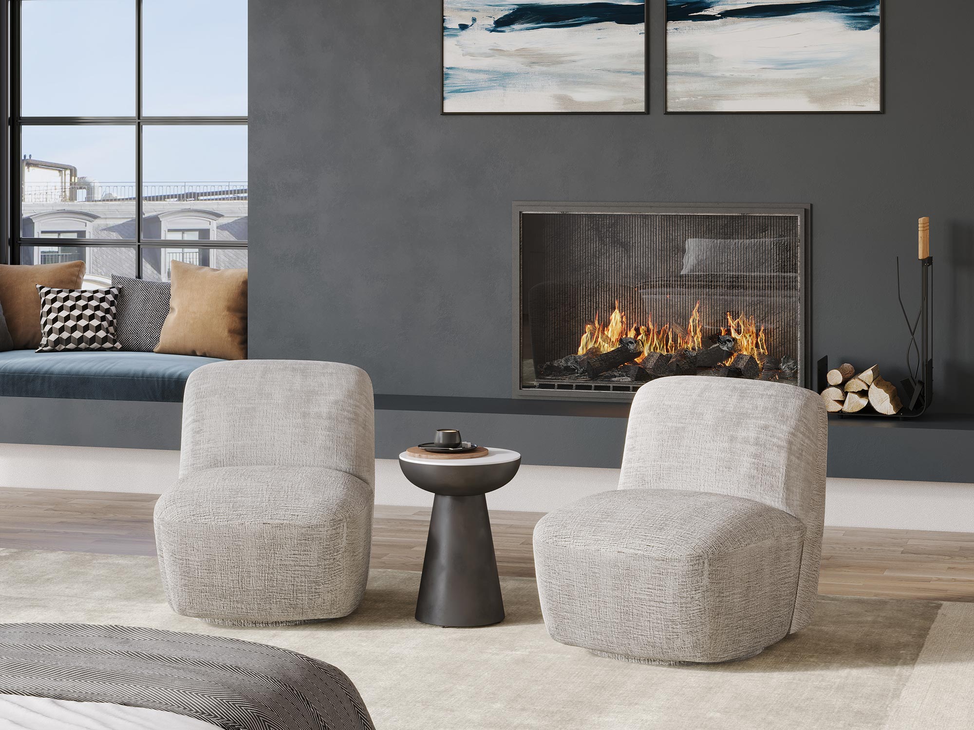 Dodaj odrobinę luksusu do swojego salonu. Fotel obrotowy Edinburgh to elegancka kombinacja prostoty i nowoczesności. Tapicerka w szaro-beżowym kolorze wykonana z najwyższej jakości szenilu zapewnia zarówno komfort, jak i styl. Pełen obrót 360° umożliwia wygodne korzystanie, a miękkie, zaokrąglone kształty idealnie wpisują się w każde wnętrze.
