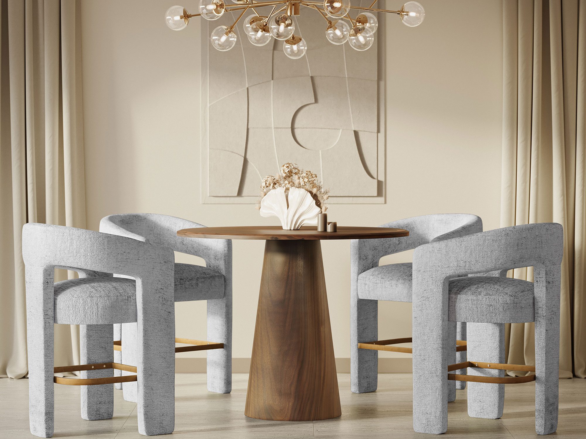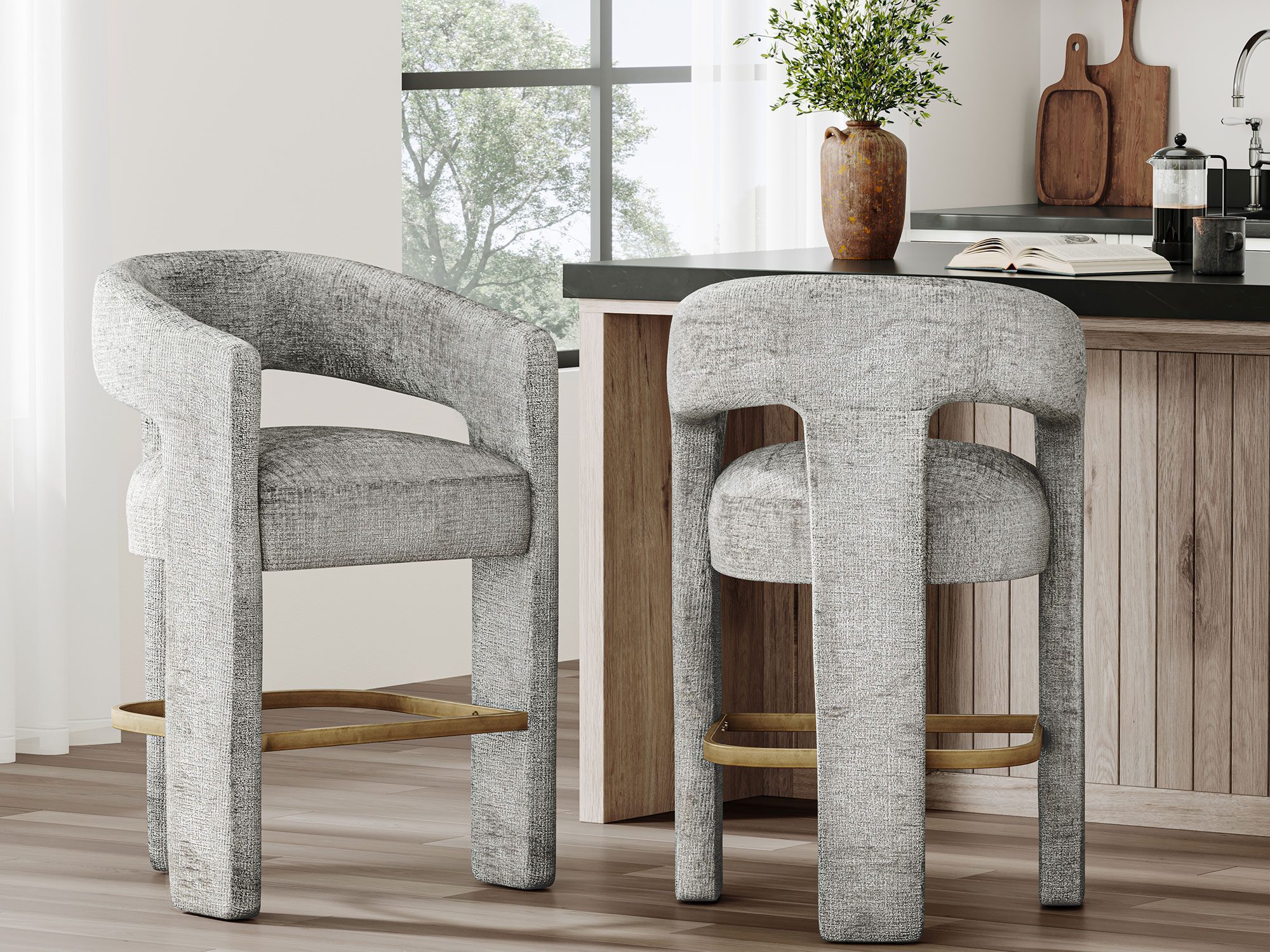 Elegancki hoker barowy o ponadczasowej formie, zaprojektowany z myślą o wyjątkowym komforcie i wyrafinowanym stylu. Tapicerka w srebrnoszarym odcieniu, wykonana z luksusowej tkaniny szenilowej, nadaje mu subtelny, nowoczesny wygląd. Idealny wybór do każdej jadalni czy aneksu kuchennego.