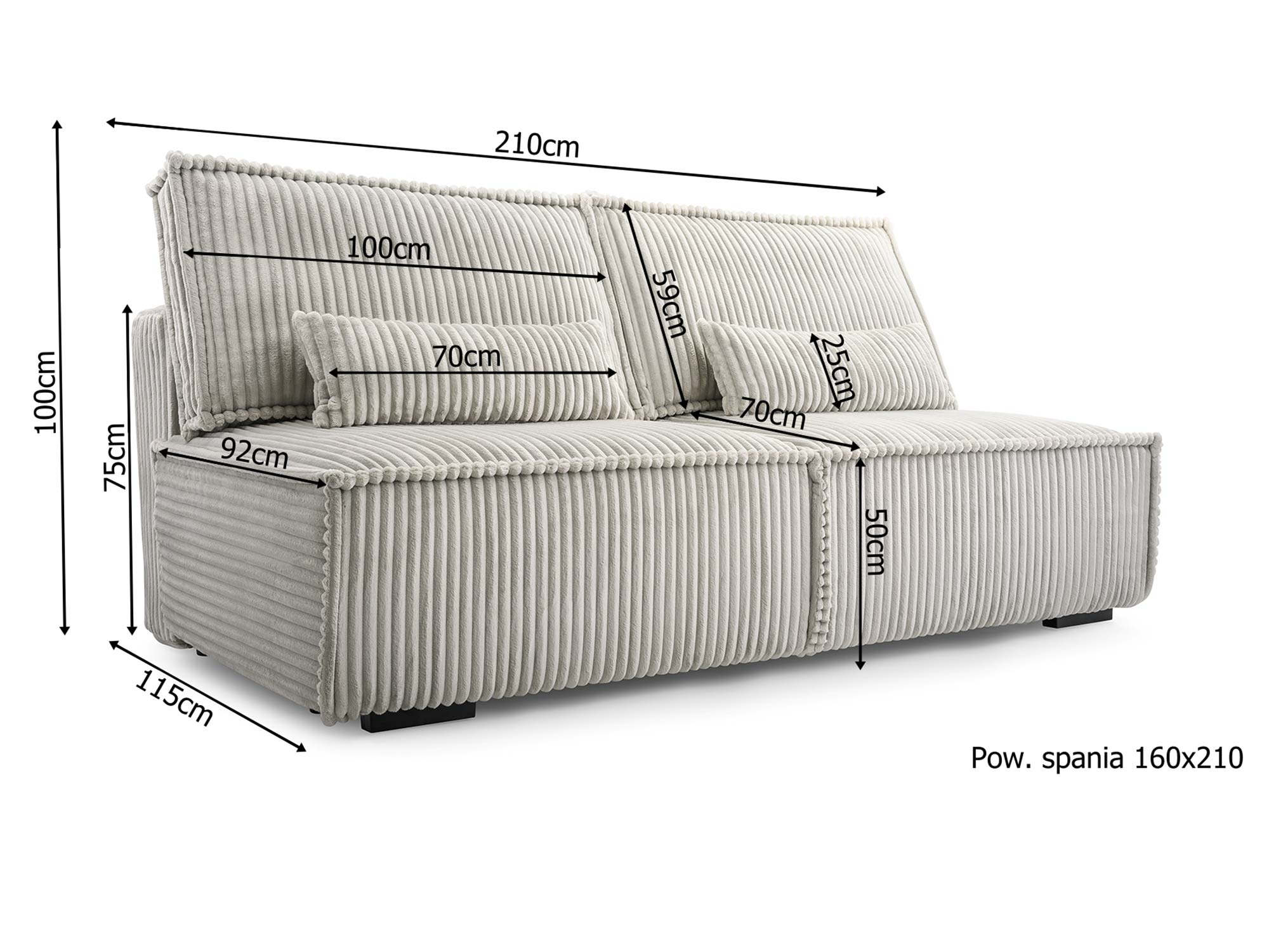 Wymiary 115 × 210 × 100 cm