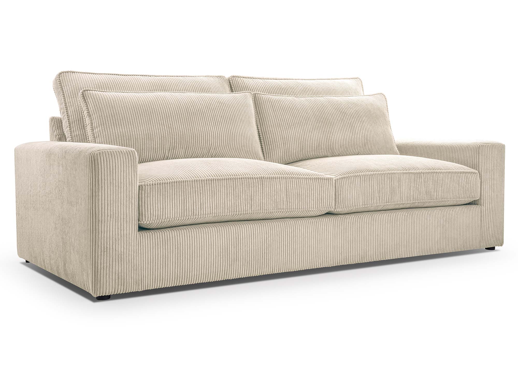 Siedzisko oparte na sprężynach falistych typu A charakteryzuje się odpowiednią elastycznością i odpornością na odkształcenia, co przekłada się na wieloletnią wygodę użytkowania. Kanapa wyposażona jest w 2 poduszki oparciowe i 2 płaskie poduszki, które nadają jej przytulny charakter i pozwalają dopasować komfort do indywidualnych potrzeb.