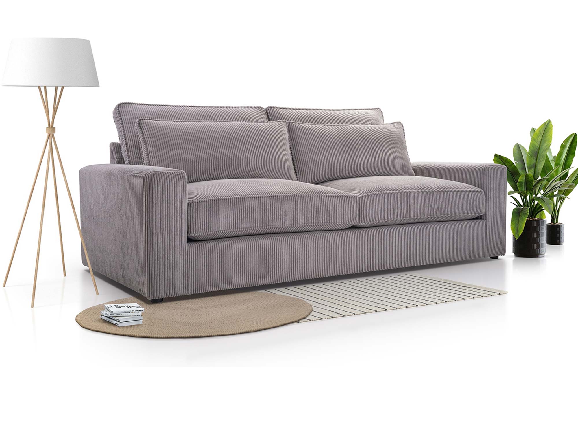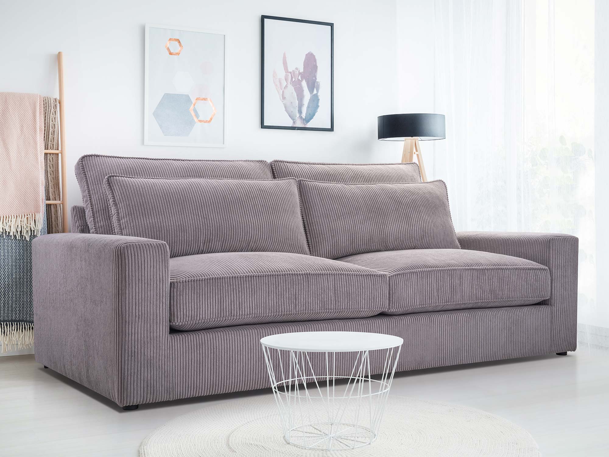 Clomi to mebel wolnostojący, co oznacza, że można ustawić ją w dowolnym miejscu salonu – zarówno przy ścianie, jak i w centralnej części pokoju, tworząc elegancką strefę relaksu. Choć kanapa nie posiada funkcji spania ani pojemnika na pościel, rekompensuje to swoją formą, wygodą i designem. To propozycja dla osób, które pragną uczynić salon miejscem wypoczynku w prawdziwie luksusowym wydaniu.