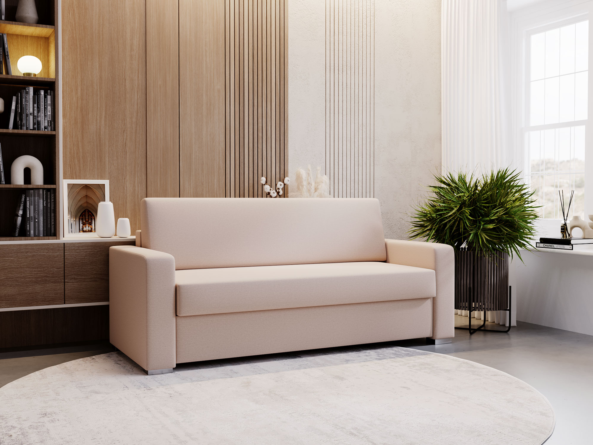 Sofa BOSTIN II jest kompaktowym, ale funkcjonalnym meblem, idealnym do mniejszych przestrzeni. Została zaprojektowana, aby maksymalnie wykorzystać dostępną powierzchnię, oferując przy tym pełnowymiarową funkcję spania.