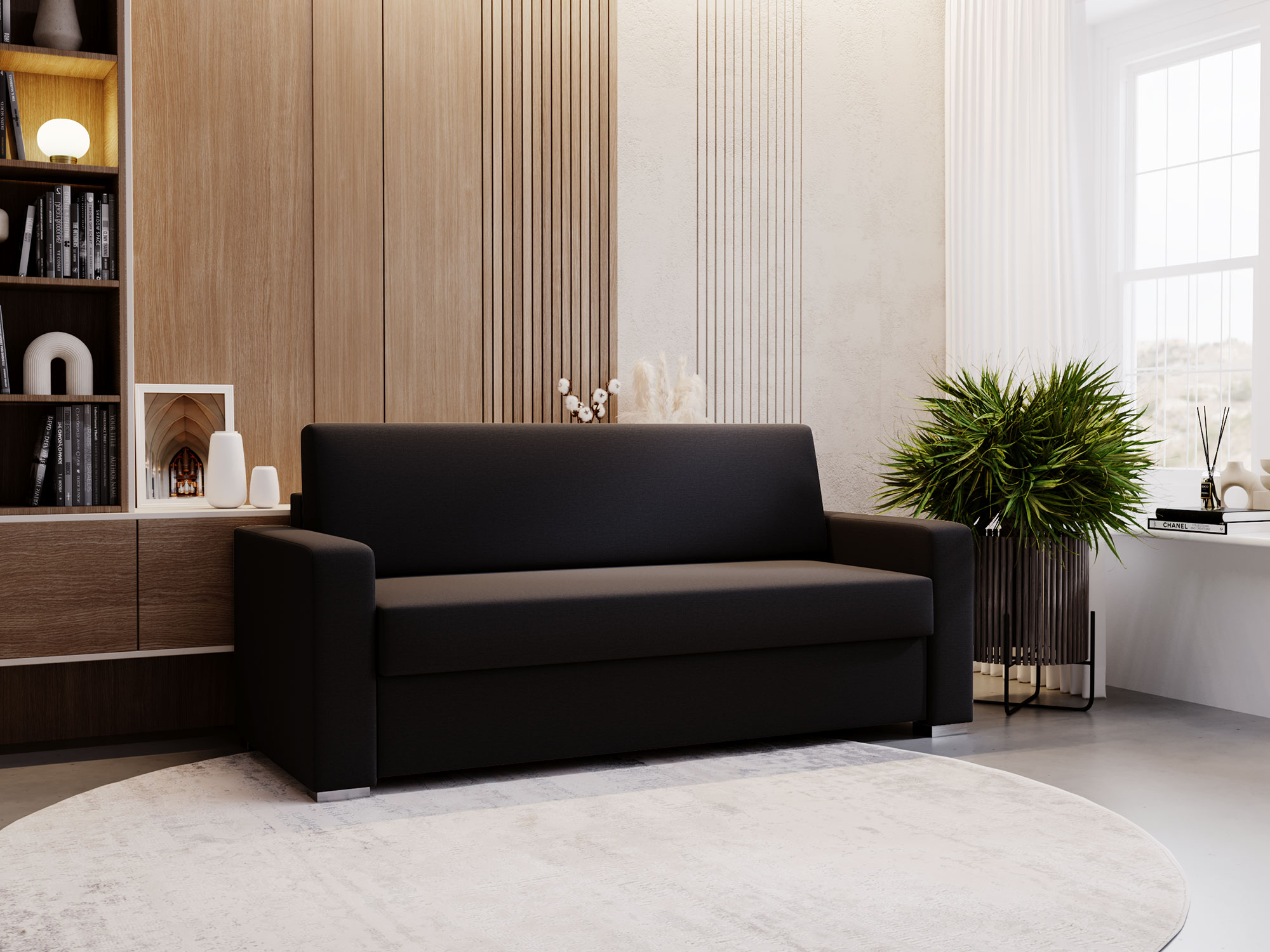 Sofa BOSTIN II jest kompaktowym, ale funkcjonalnym meblem, idealnym do mniejszych przestrzeni. Została zaprojektowana, aby maksymalnie wykorzystać dostępną powierzchnię, oferując przy tym pełnowymiarową funkcję spania.