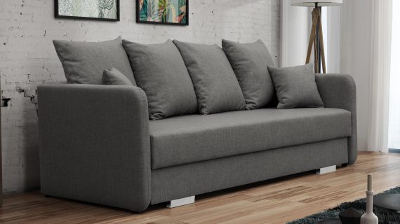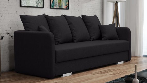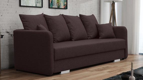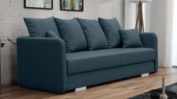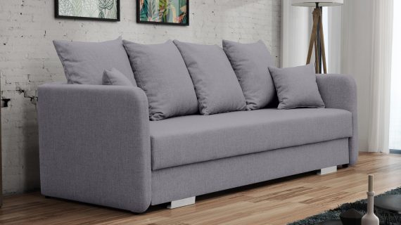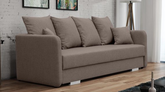 Przede wszystkim sofa dwuosobowa do salonu LAURO to nowoczesny model z oparciem w postaci miękkich poduszek. Co więcej prezentowany mebel doskonale sprawdzi się we wnętrzu salonu. Ponadto wyposażenie go w nóżki w kolorze chromu sprawia, że prezentuje się niezwykle elegancko. Dodatkowo sofa posiada pojemnik w którym można z powodzeniem można przechowywać pościel, koce czy też poduszki. Model ten posiada również rozkładaną funkcję spania, która pozwala na zamienienie sofy w wygodne łóżko.