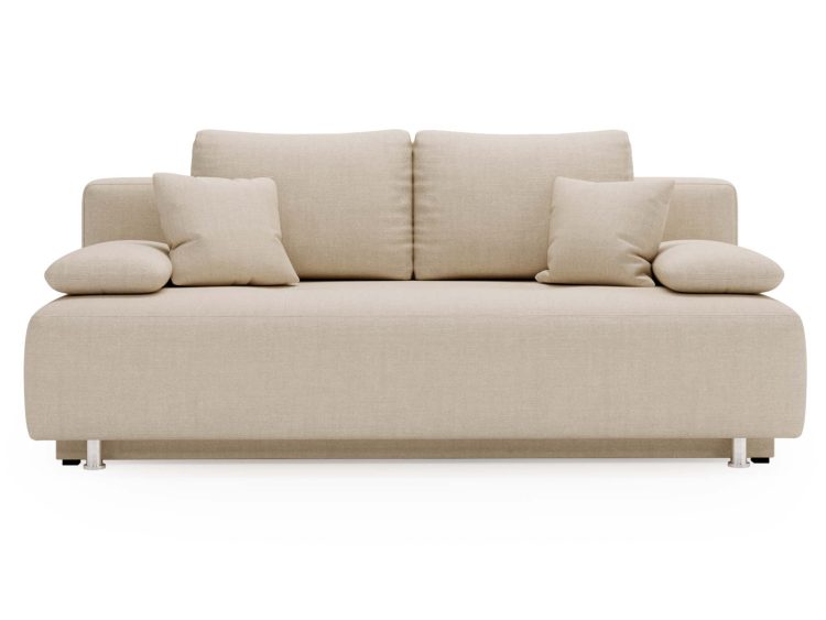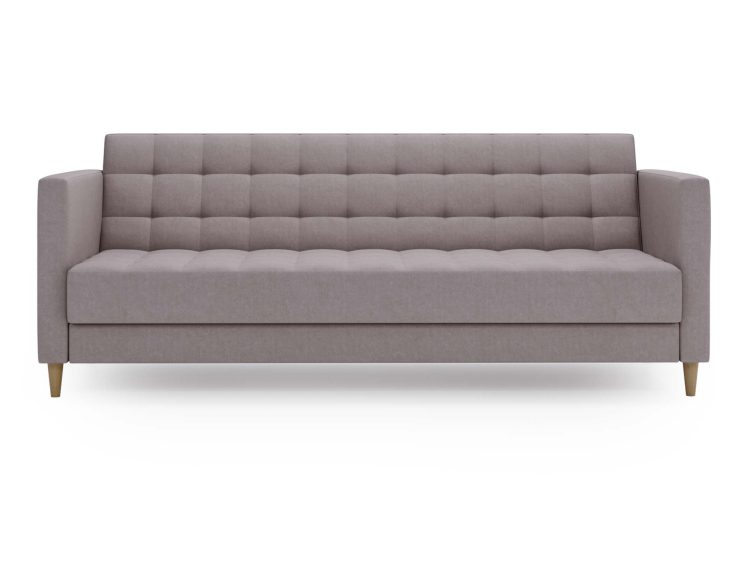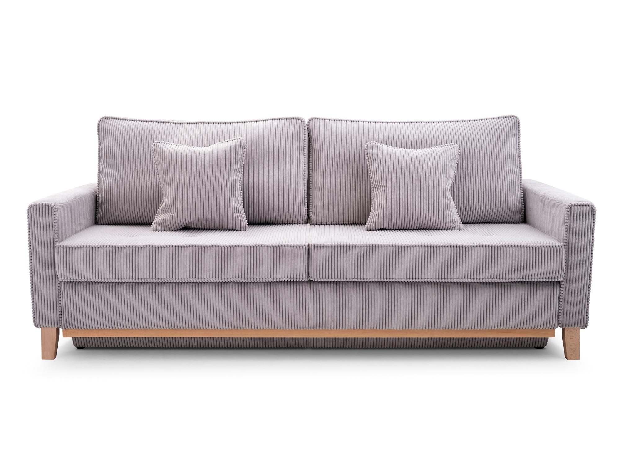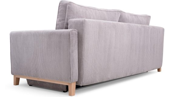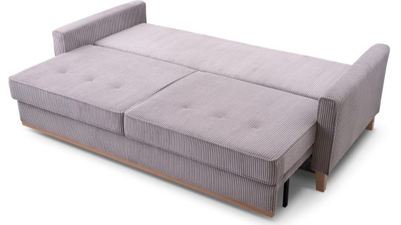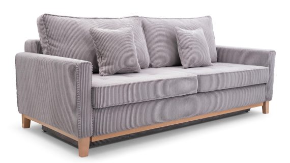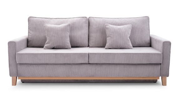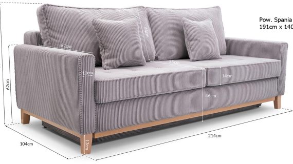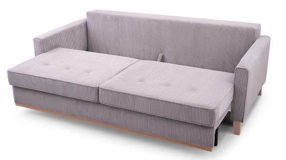 Co najważniejsze wnętrze sofy wypełniono sprężynami falistymi oraz pianką T-30. Przede wszystkim użycie tych materiałów podnosi komfort wypoczynku i zapewnia równomierne rozłożenie twardości na całej powierzchni. Co więcej poduszki, w które została wyposażona sofa posiadają wszyte zamki ułatwiające utrzymanie czystości sofy. Ponadto wewnątrz mebla znajduje się pakowny pojemnik na pościel. Przede wszystkim sofa PELATAS to mebel tapicerowany tkaniną, której kolorystkę można wybrać z bogatej gamy wybarwień.