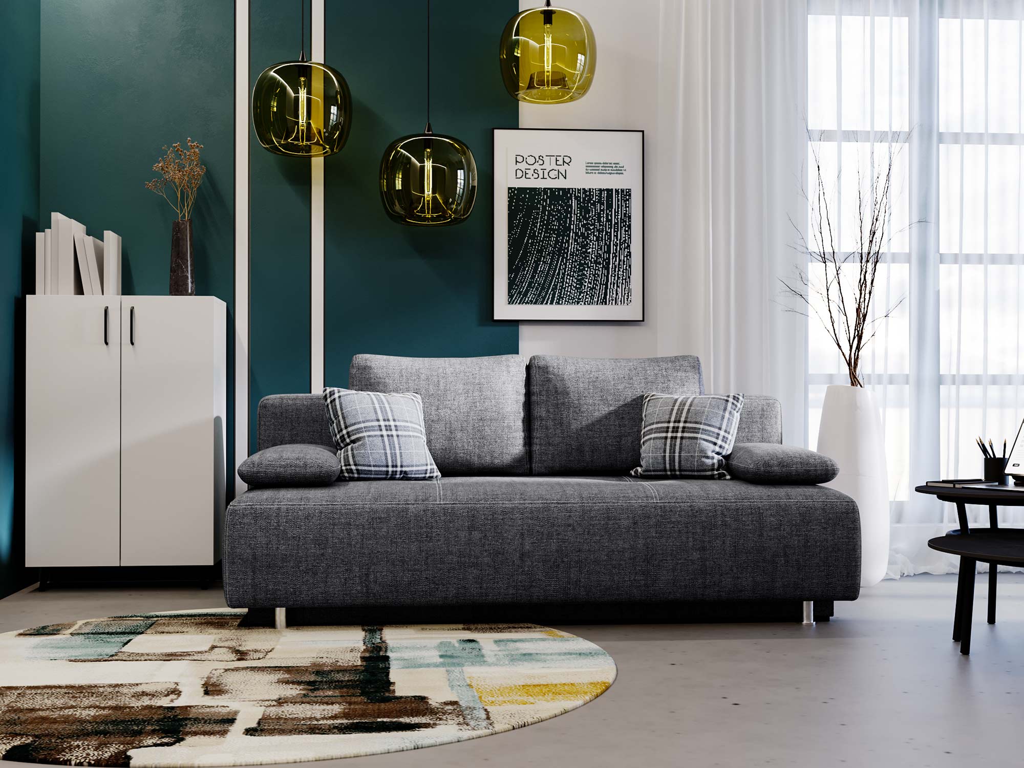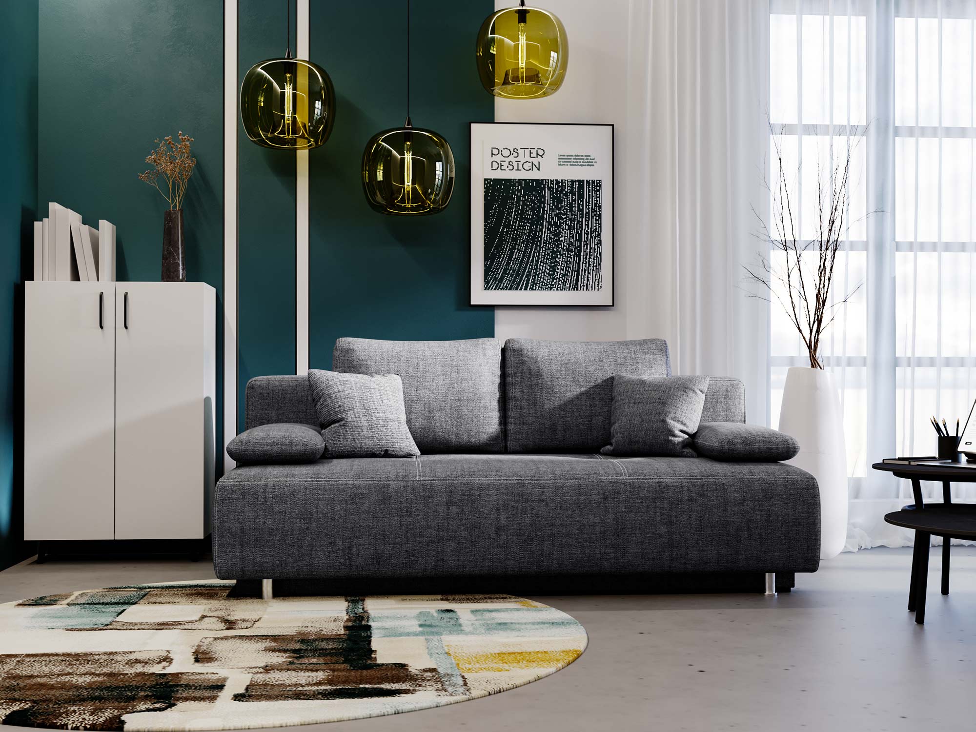 Sofa POLANA Mała i Elegancka do Salonu to idealne połączenie stylu, funkcjonalności i komfortu. Kompaktowe wymiary sprawiają, że sofa doskonale pasuje do mniejszych przestrzeni, takich jak małe salony, kawalerki czy pokoje gościnne. Funkcja spania, pojemnik na pościel oraz nowoczesne chromowane nóżki czynią z niej nie tylko praktyczny, ale również stylowy dodatek do każdego wnętrza.