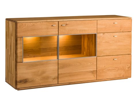 Co najważniejsze główny walor tego mebla stanowi użycie do jego produkcji litego drewna dębowego. Stanowi ono przede wszystkim gwarancje solidności i niebywałej trwałości, a przy tym świetnie się prezentuje i nadaje każdemu wnętrzu dużo ciepła i przytulności. Ponadto każdy mebel wykonany z drewna jest unikatowy dzięki posiadaniu niepowtarzalnego rysunku słojów. Co więcej mebel posiada szczotkowane wykończenie prze co doskonale czuć unikalną strukturę drewna.