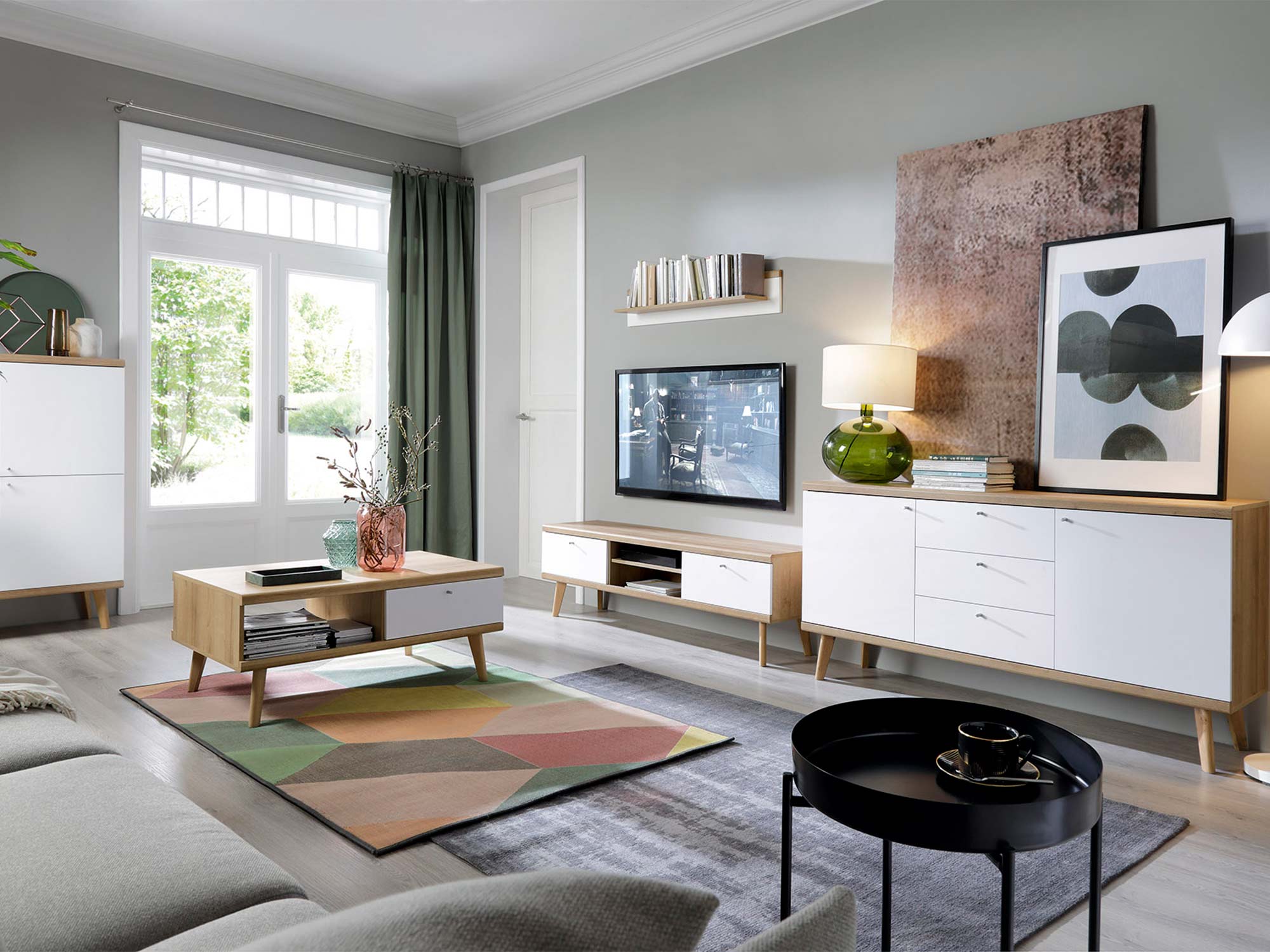 Ława Orys 107cm Idealna do Salonu to idealne rozwiązanie dla tych, którzy szukają elegancji, funkcjonalności i skandynawskiego stylu w jednym meblu. Jej minimalistyczny design, łączący naturalny dąb Riviera z białymi frontami, wnosi do wnętrza ciepło oraz lekkość. Ława doskonale sprawdzi się jako centrum towarzyskich spotkań lub miejsce na codzienne akcesoria, jednocześnie wzbogacając przestrzeń swoją prostotą i elegancją.
