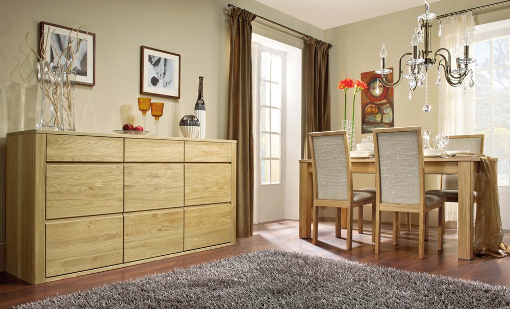 Dzięki nowoczesnym i funkcjonalnym meblom drewnianym z łatwością urządzisz swój salon i jadalnię oraz sypialnię czy nawet gabinet. Szeroka gama produktów tej marki, którą oferujemy na naszej stronie z powodzeniem jest w stanie zadowolić wymagania i potrzeby każdej osoby. Nowoczesny styl wyprodukowany z klasycznych materiałów to niespotykane połączenie, dzięki któremu każdy mebel jest niepowtarzalny. Wykorzystywane drewno dębowe posiada swój indywidualny charakter, dzięki czemu kolor mebli, ich faktura linie słojów oraz parametry sęków są unikalne i niepowtarzalne.