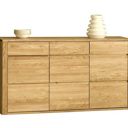 Gustowna i nowomodna szafka z litego dębu Pekin wyprodukowana z najlepszej klasy litego drewna dębowego wspaniale wpasuje się w stylizacje panujące w niejednej jadalni czy kuchni. Co więcej stabilna forma oraz nowomodne, stylowe szlifowanie sprawią, że komoda dębowa w naturalnym kolorze wspaniale ozdobi każde wnętrze. Ponadto Pekin posiada funkcjonalne i pojemne szuflady, które z całą pewnością ułatwiają organizację sprzętu RTV czy przechowywanie zastawy stołowej. Przede wszystkim frezowane uchwyty dodają komodzie niepowtarzalnego wyglądu i nowoczesnej stylistyki. Reasumując komoda dębowa w naturalnym kolorze to świetne rozwiązanie dla każdego miłośnika nowoczesnych stylizacji stworzonych z naturalnych i trwałych materiałów.