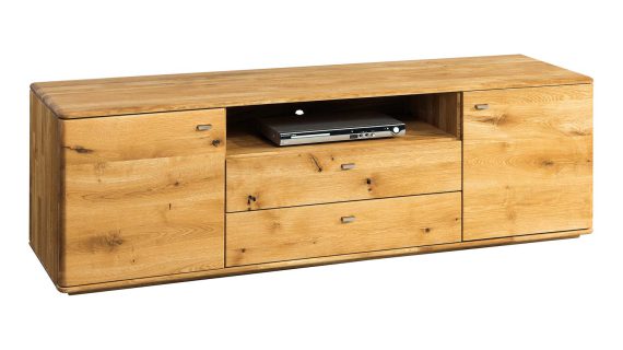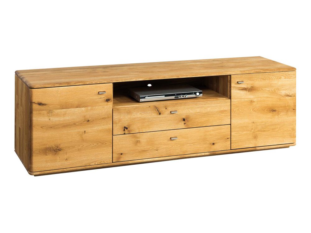 Przedstawiona drewniana półka pod tv to wspaniały mebel, nadający każdemu pokojowi oryginalnego stylu i szykowności. Z pewnością wysokiej jakości materiały wykorzystano do produkcji szafki, składa się ona z najlepszego gatunku litego drewna dębowego, listwy w korpusie łączone na mikro wczep. Ponadto drewniana szafka RTV pod telewizor jest wyposażona w pakowną przestrzeń, która idealnie sprawdza się w przechowywaniu sprzętu RTV, konsoli, odtwarzaczy, kabli oraz innych.