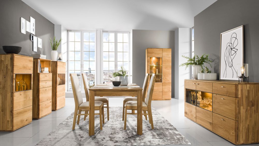 Dzięki funkcjonalnym i nowomodnym meblom z przyjemnością urządzisz gabinet, jadalnię, sypialnię i salon. Z pewnością, wszechstronna oferta mebli proponowana na naszej stronie z łatwością spełni oczekiwania wszystkich klientów. Ponadto, nowoczesny styl stworzony z klasycznych surowców stwarza unikalne powiązanie, przez który każdy mebel jest wyjątkowy. Co więcej, wykorzystywany w produkcji lity dąb ma swoje charakterystyczne cechy, dzięki czemu kolor, faktura, linie słojów i sęków oryginalne.