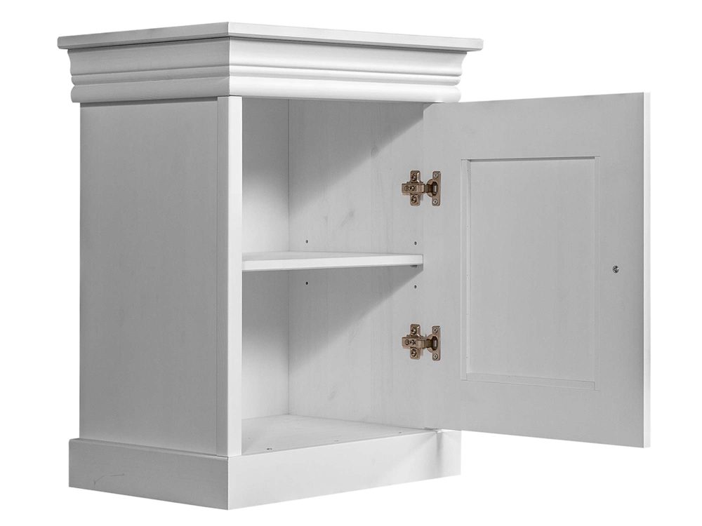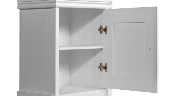 Wewnątrz szafki znajduje się funkcjonalna przestrzeń z jedną półką – idealna do przechowywania książek, kosmetyków, ładowarek czy innych niezbędnych drobiazgów. Na górnym blacie z łatwością ustawisz lampkę nocną, zegarek czy ulubioną ramkę ze zdjęciem.