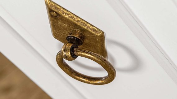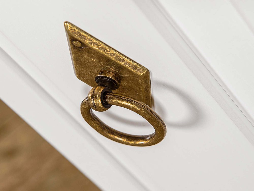 Metalowy uchwyt w kolorze starego złota to subtelny ukłon w stronę stylu retro. To on nadaje meblowi wyjątkowego charakteru, który świetnie komponuje się zarówno z klasycznym, jak i nowoczesnym wystrojem wnętrza. Ciepła kolorystyka drewna naturalnie ociepla aranżację, czyniąc przestrzeń bardziej przyjazną i domową.