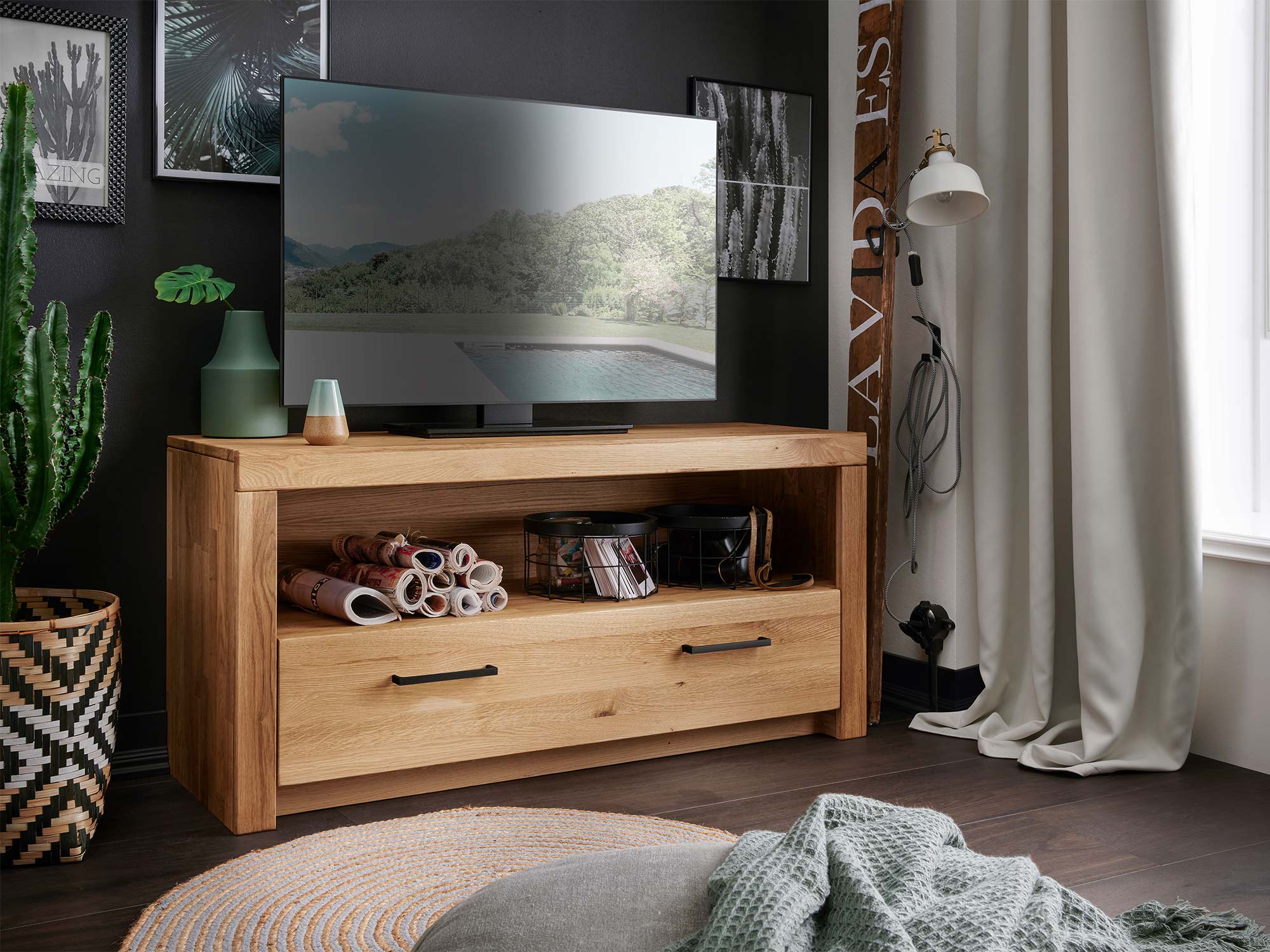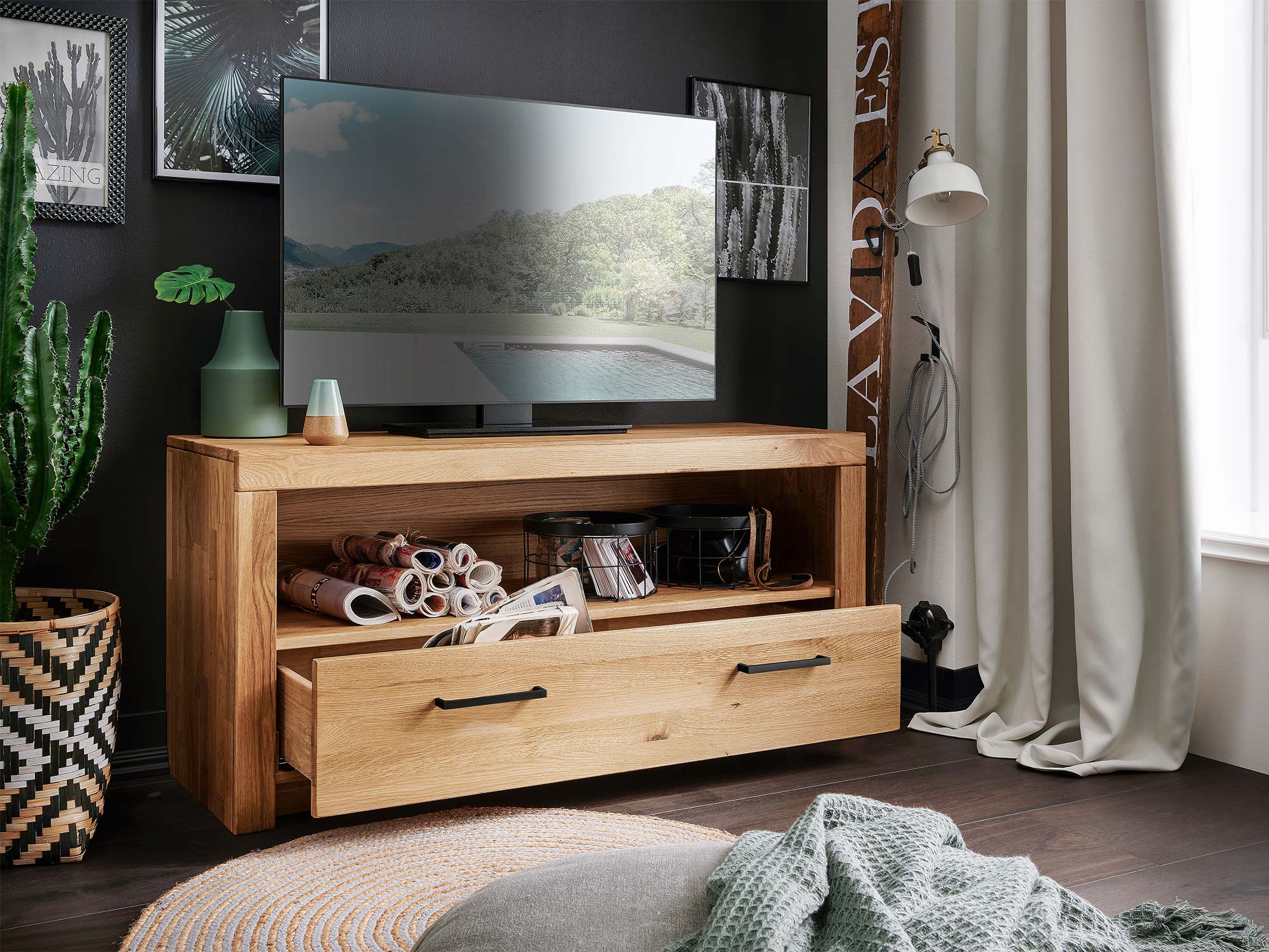 Wykonana z litego drewna dębowego, Szafka RTV Solis I to mebel, który łączy w sobie estetykę i trwałość. Dąb jest nie tylko niezwykle wytrzymały, ale również piękny – naturalne słoje dodają szafce unikalnego charakteru, podkreślając autentyczność i wysoką jakość wykonania. To mebel, który przetrwa lata i doda wnętrzu wyjątkowego uroku.