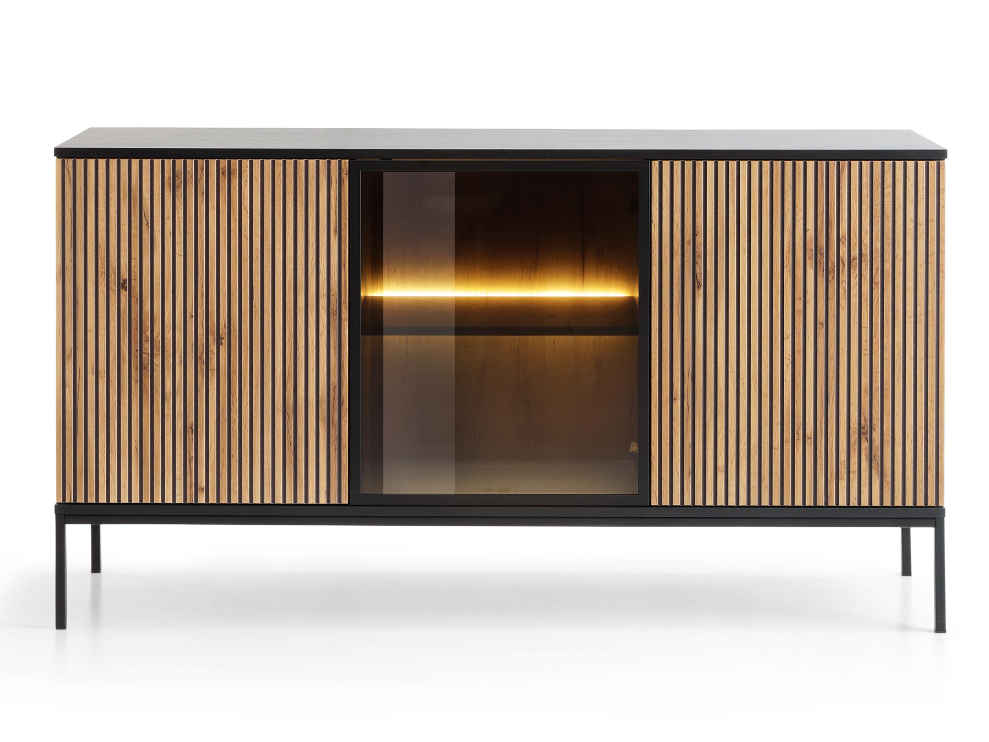 Komoda Spokój Dąb Wotan/Czarny 154cm to doskonałe zestawienie naturalnych barw i materiałów, które nadaje jej wyjątkowego charakteru i sprawia, że przyciąga wzrok w każdym wnętrzu.