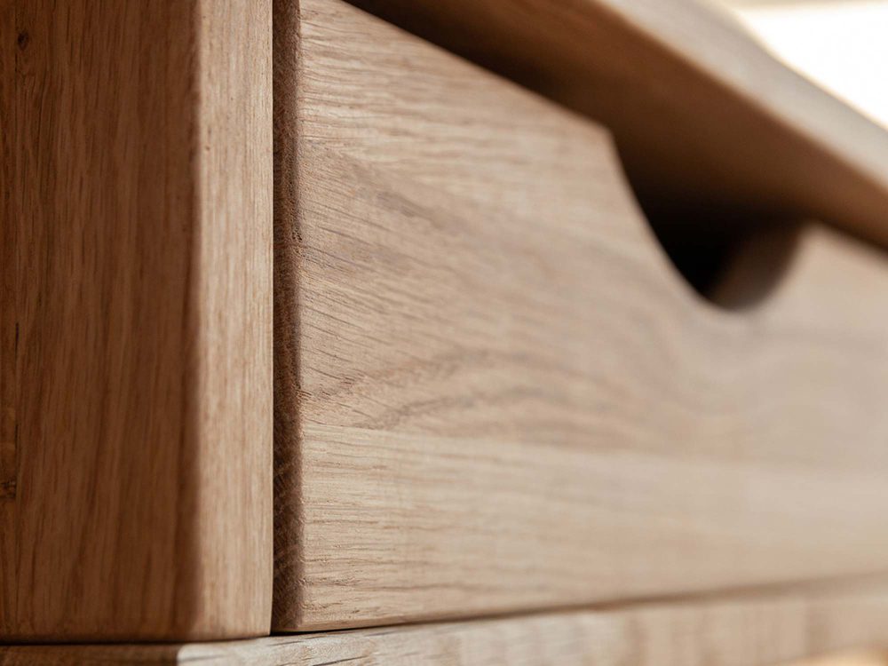 Dębowa Klasyczna Komoda Selesta posiada trzy pojemne szuflady, które są idealnym miejscem na przechowywanie różnych przedmiotów. Prowadnice szuflad z cichym domykiem gwarantują komfort użytkowania, zapewniając jednocześnie cichą i płynną pracę szuflad. Otwarte wnęka w górnej części komody tworzy dodatkową przestrzeń do eksponowania dekoracji, książek lub innych przedmiotów. Prostota wykonania mebla doskonale eksponuje naturalne piękno użytego materiału. Dlatego komoda Selesta może odgrywać rolę nie tylko użytkową, ale także stanowić wyjątkowy element dekoracyjny.