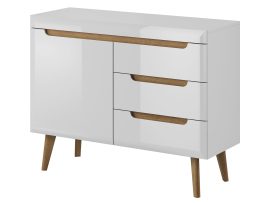 Komoda wyposażona jest w trzy przestronne szuflady oraz trzy zamykane szafki z półkami. Taka konstrukcja pozwala na wygodne i uporządkowane przechowywanie dokumentów, ubrań, zastawy czy domowych drobiazgów. A co z szerokim blatem? To idealna przestrzeń na ramki ze zdjęciami, świece zapachowe, ozdoby świąteczne czy kwiaty w ceramicznym wazonie.