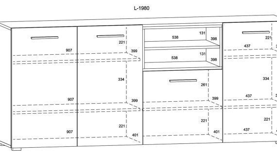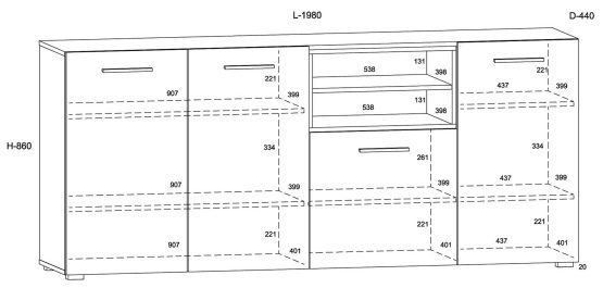 Wysokość: 86 cm / Szerokość: 198 cm / Głębokość: 44 cm