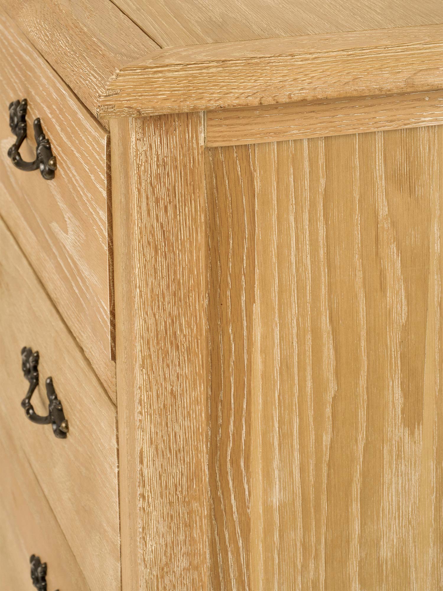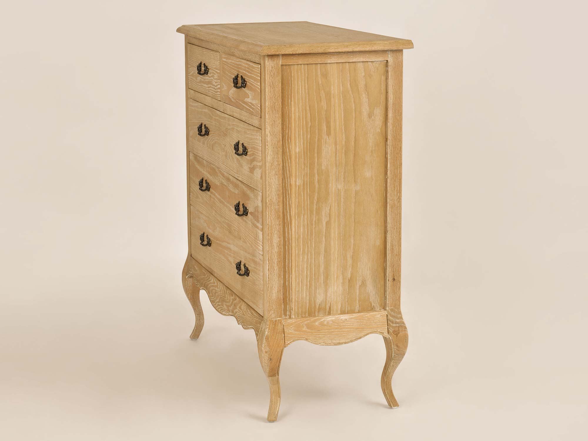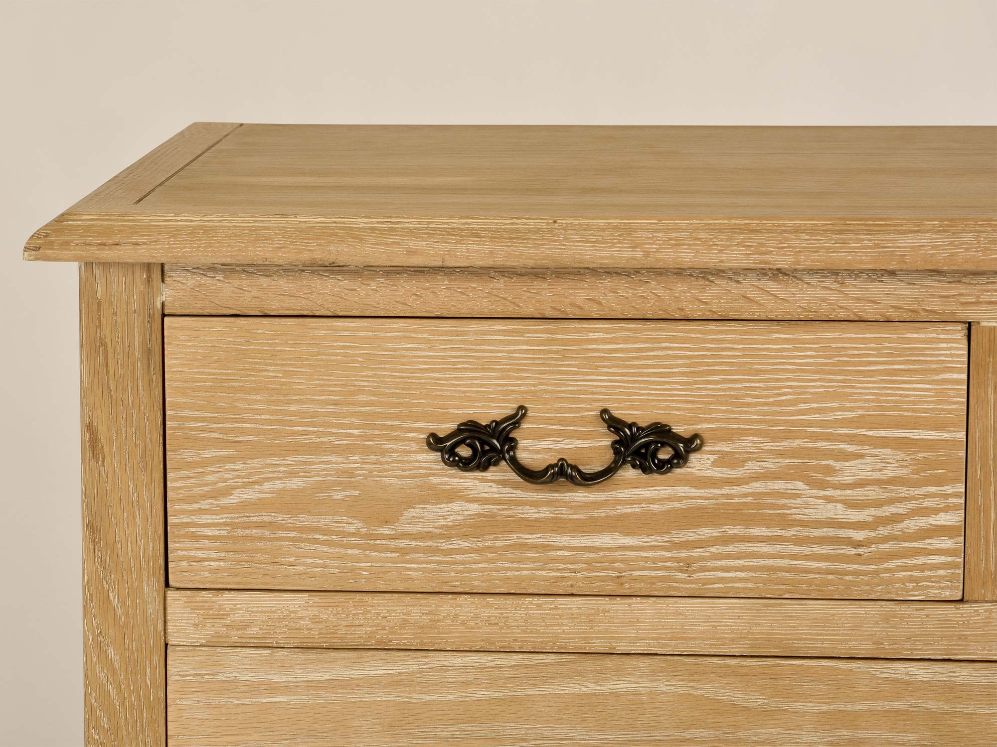Komoda Venezia Oak została zaprojektowana z myślą o miłośnikach klasycznego stylu francuskiego. Jej gięte nogi, precyzyjne frezowania oraz ozdobne uchwyty to elementy, które podkreślają jej elegancki charakter. Szczotkowana powierzchnia i delikatne przetarcia dodają subtelnego wdzięku vintage, czyniąc tę komodę nie tylko funkcjonalnym meblem, ale także piękną ozdobą wnętrza.