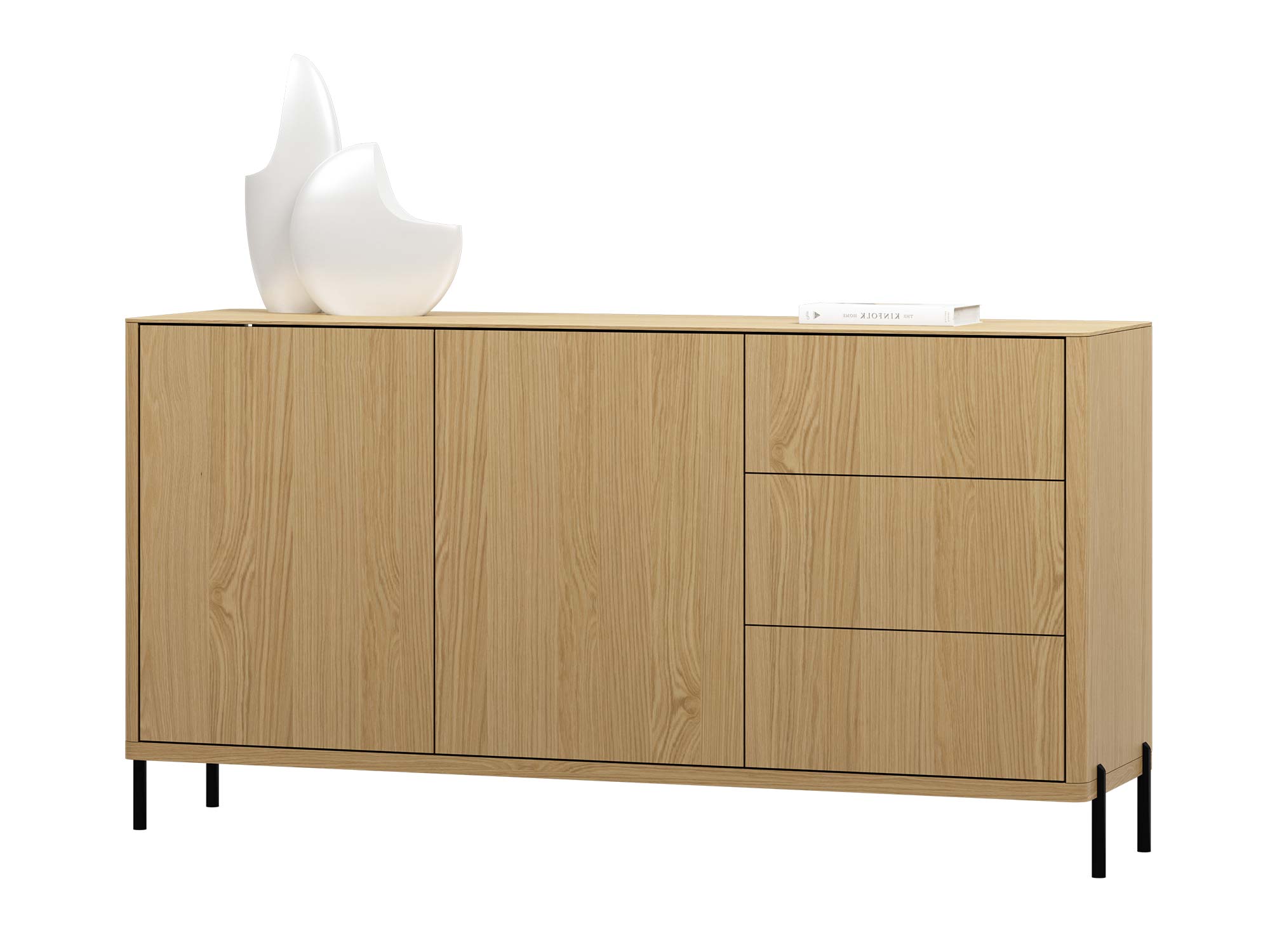 Komoda Avolino 2D3S została stworzona z myślą o tych, którzy poszukują połączenia nowoczesnej estetyki i funkcjonalności. Wyróżnia ją naturalna okleina z elementami litego drewna w kolorze dąb alpejski naturalny – dzięki temu każdy egzemplarz ma swój unikalny rysunek słojów i niepowtarzalny charakter.