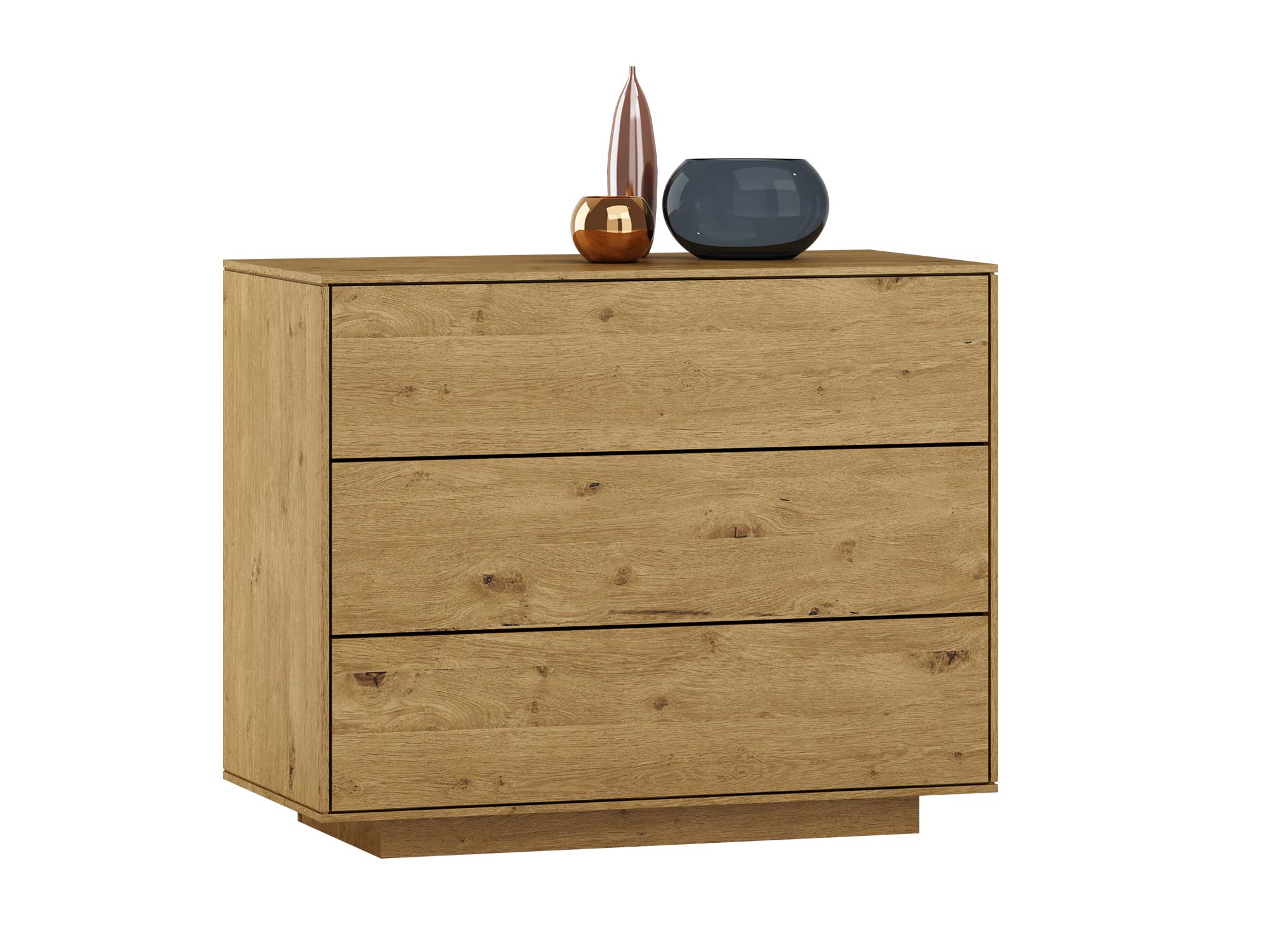 Komoda 3S praktyczna Fiorenzo została zaprojektowana tak, aby łączyć w sobie estetykę i ergonomię. Jej fronty wykonano z wysokiej jakości okleiny dębowej, która wiernie oddaje naturalny rysunek drewna. Każdy egzemplarz wyróżnia się unikalnym usłojeniem – nie znajdziesz dwóch identycznych mebli. To sprawia, że Twoje wnętrze nabierze niepowtarzalnego charakteru.