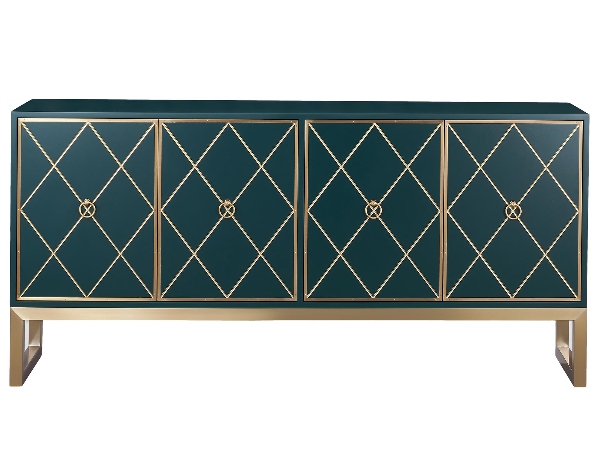 Stylowa komoda Eleganza w kolorze butelkowej zieleni to połączenie elegancji i funkcjonalności. Wyróżnia się złotymi akcentami i wyjątkowym, wytłaczanym wzorem rombów, które dodają jej luksusowego charakteru. Idealnie sprawdzi się w nowoczesnych oraz klasycznych wnętrzach, wnosząc wyrafinowany styl i funkcjonalność.