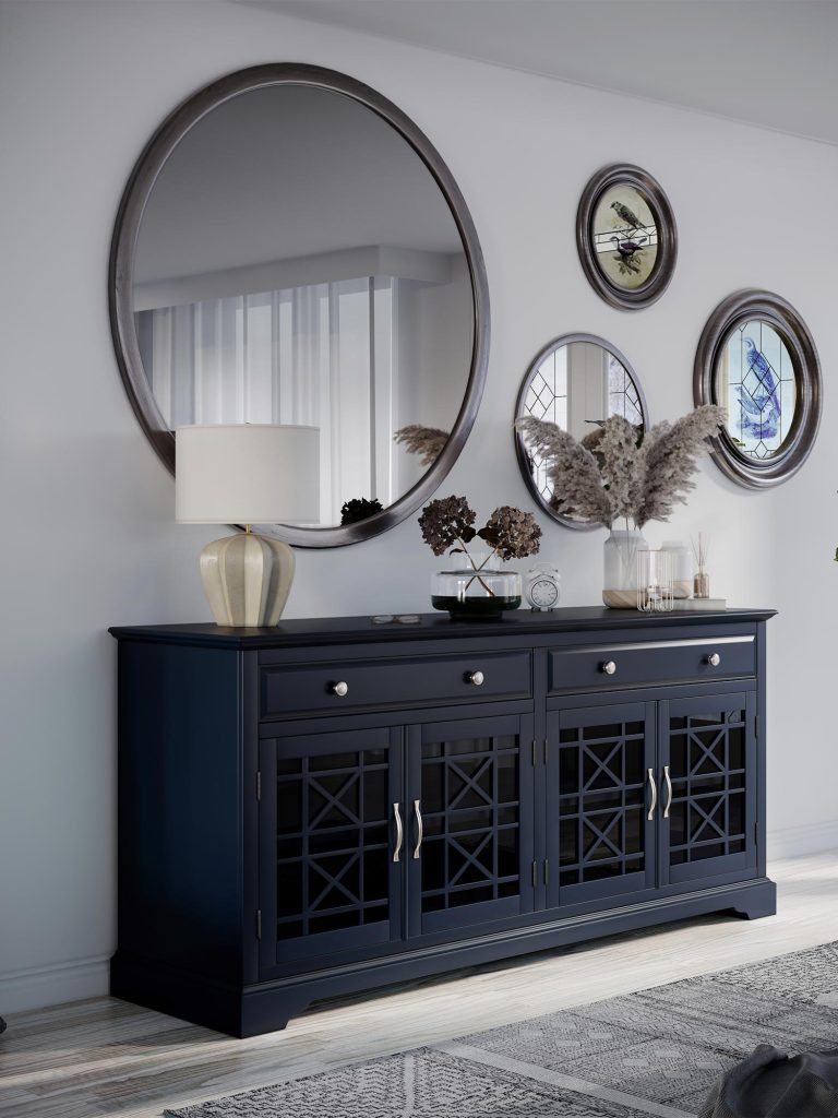 Komoda Avola to elegancka i funkcjonalna propozycja dla osób ceniących prosty, ale wyrafinowany design. Wykonana z drewna akacji, charakteryzuje się subtelnymi akcentami, które nadają jej elegancki i ponadczasowy wygląd. Ciemnogranatowy kolor sprawia, że komoda doskonale wpisuje się w nowoczesne, jak i klasyczne aranżacje wnętrz. Dzięki prostym liniom i wysokiej jakości materiałom, mebel jest nie tylko estetyczny, ale również niezwykle trwały. Komoda posiada praktyczną przestrzeń do przechowywania, co czyni ją świetnym rozwiązaniem do każdego pokoju.
