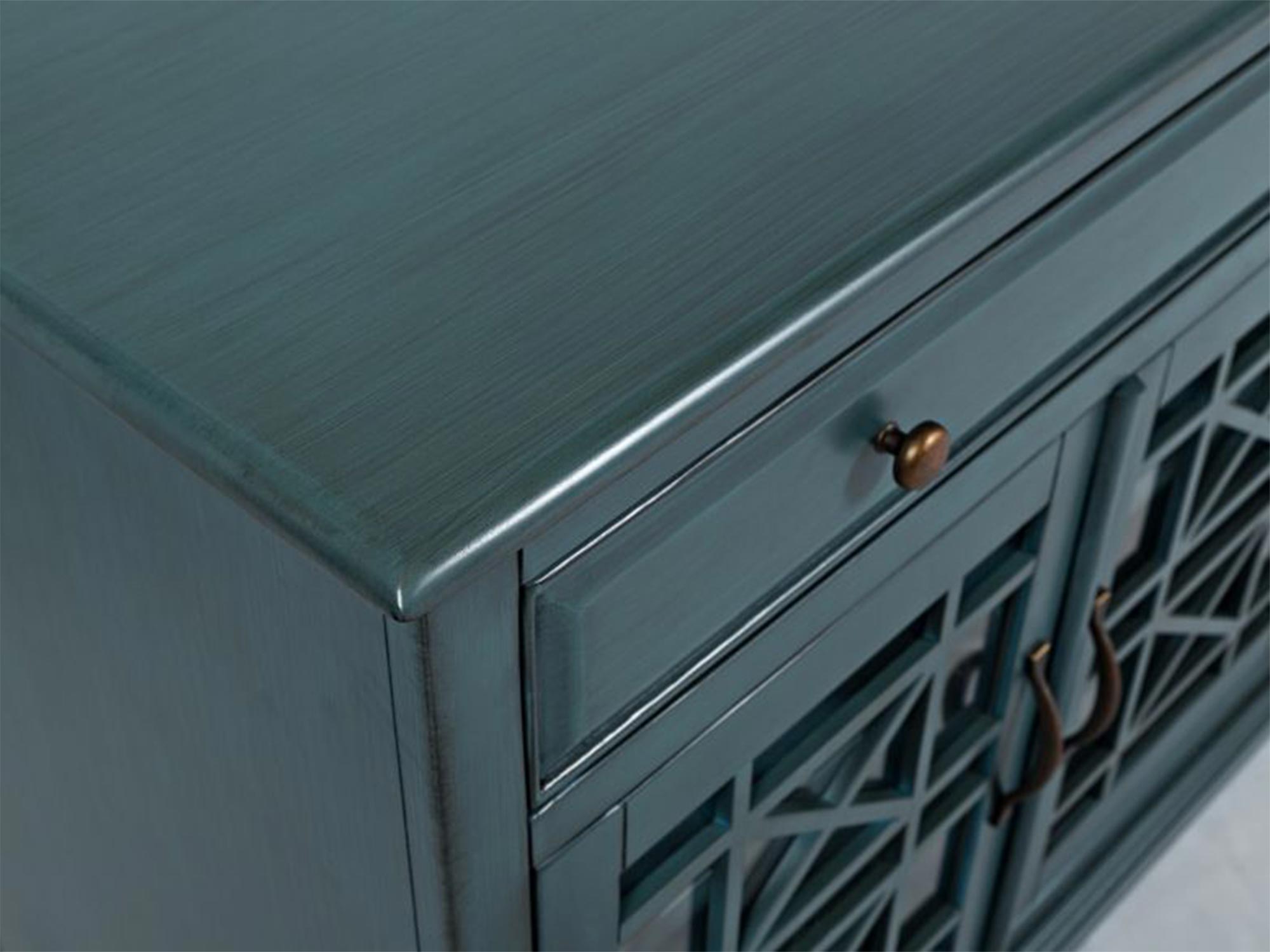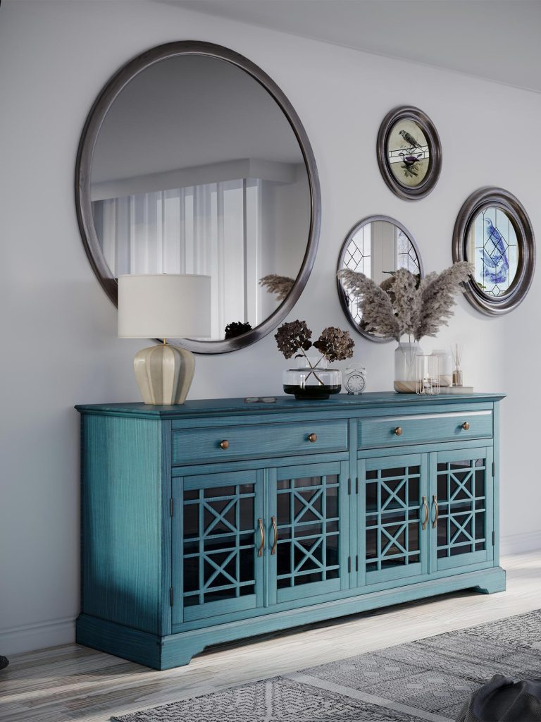 Elegancka komoda w Ciemnoniebieskim kolorze z subtelnymi przetarciami, idealna do wnętrz o klasycznym i rustykalnym charakterze. Wykonana z drewna akacji, komoda wyróżnia się solidnym wykonaniem oraz wyjątkowym wykończeniem, które nadaje jej charakteru. Subtelne przetarcia w połączeniu z ciemnym odcieniem drewna tworzą mebel pełen ciepła i elegancji. Doskonały wybór do salonów, sypialni czy przedpokojów.