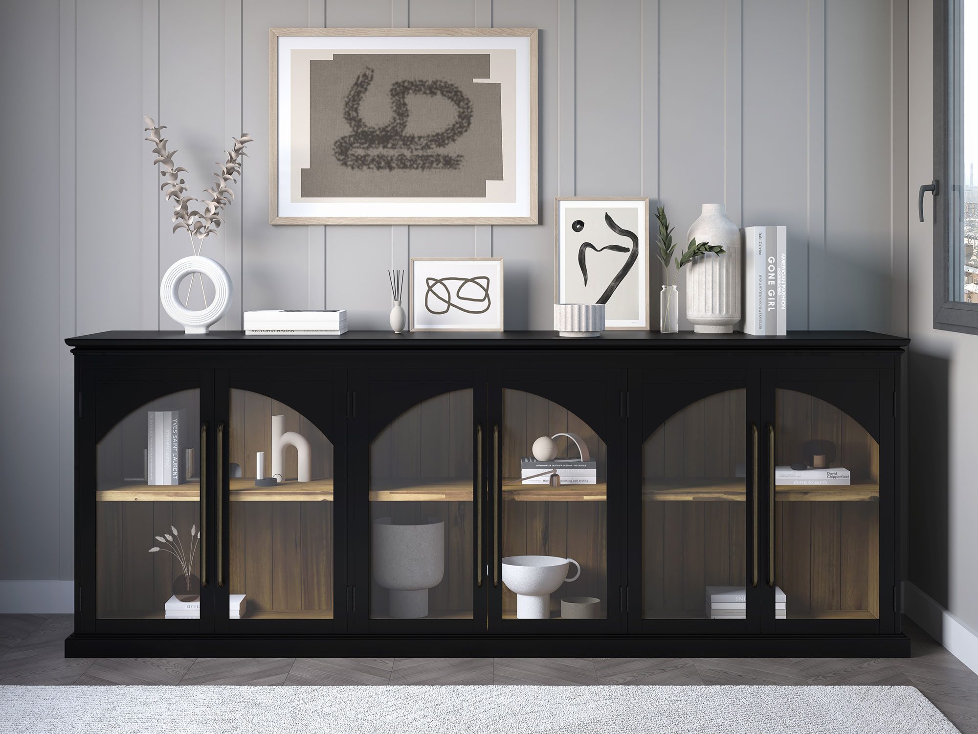 Komoda Czarna z Sześciorgiem Przeszklonych Drzwi i Ozdobnymi Łukami – Avola
