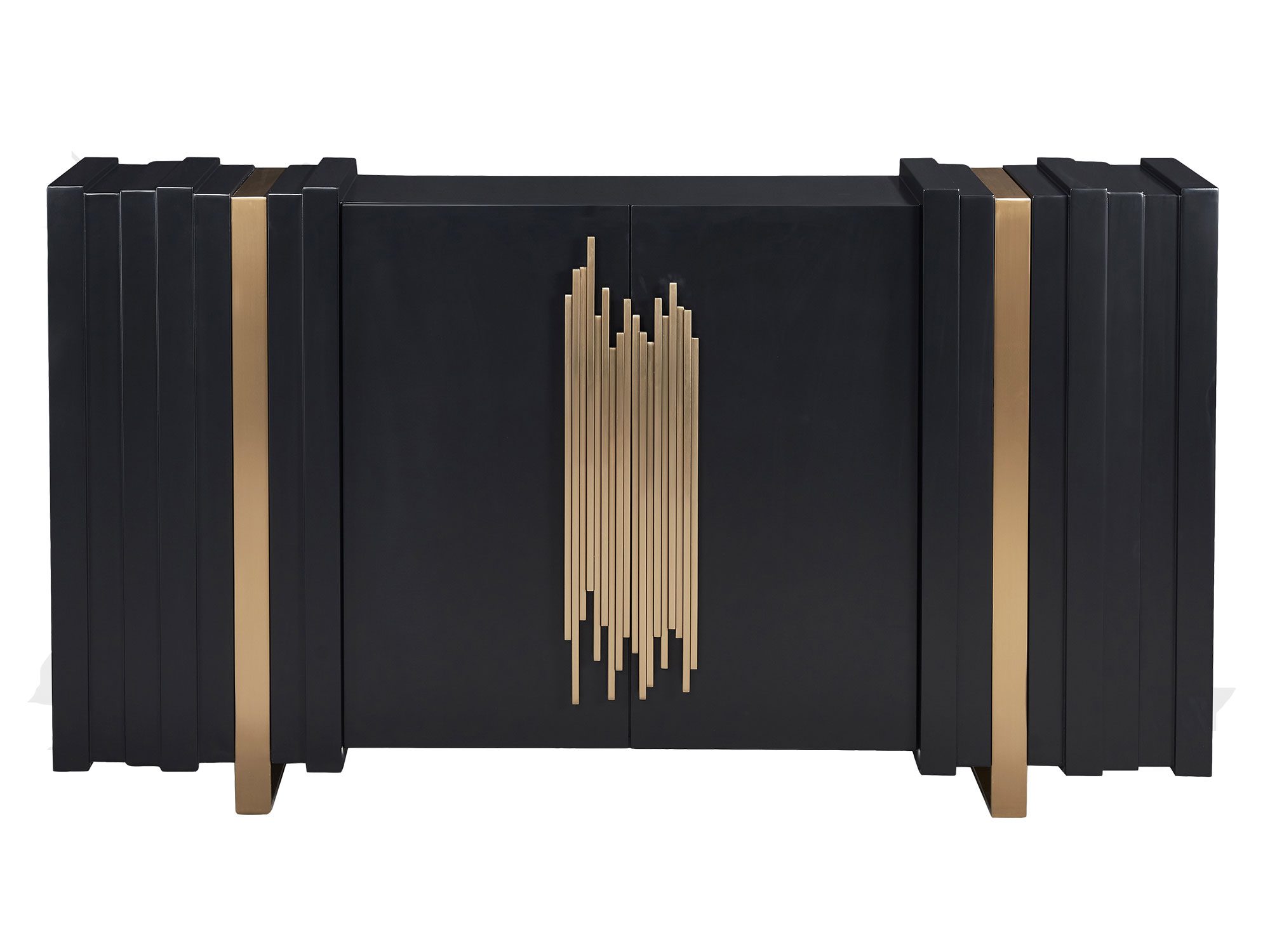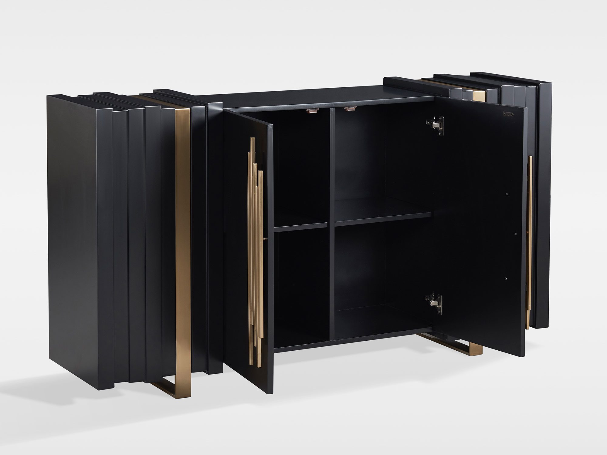 Komoda Czarna z Złotymi Uchwytami i 3D Wykończeniem – Eleganza