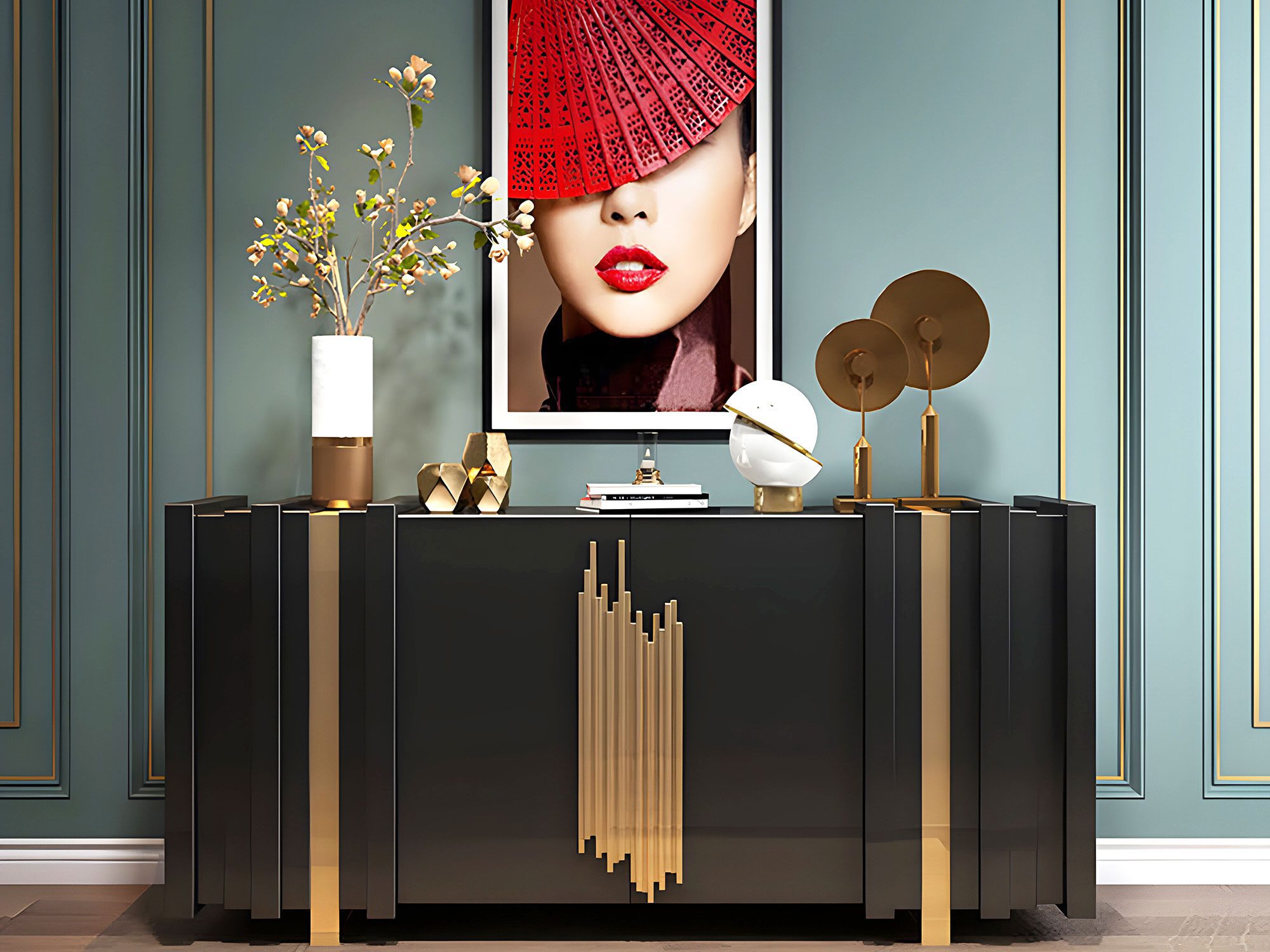 Komoda Czarna z Złotymi Uchwytami – Eleganza