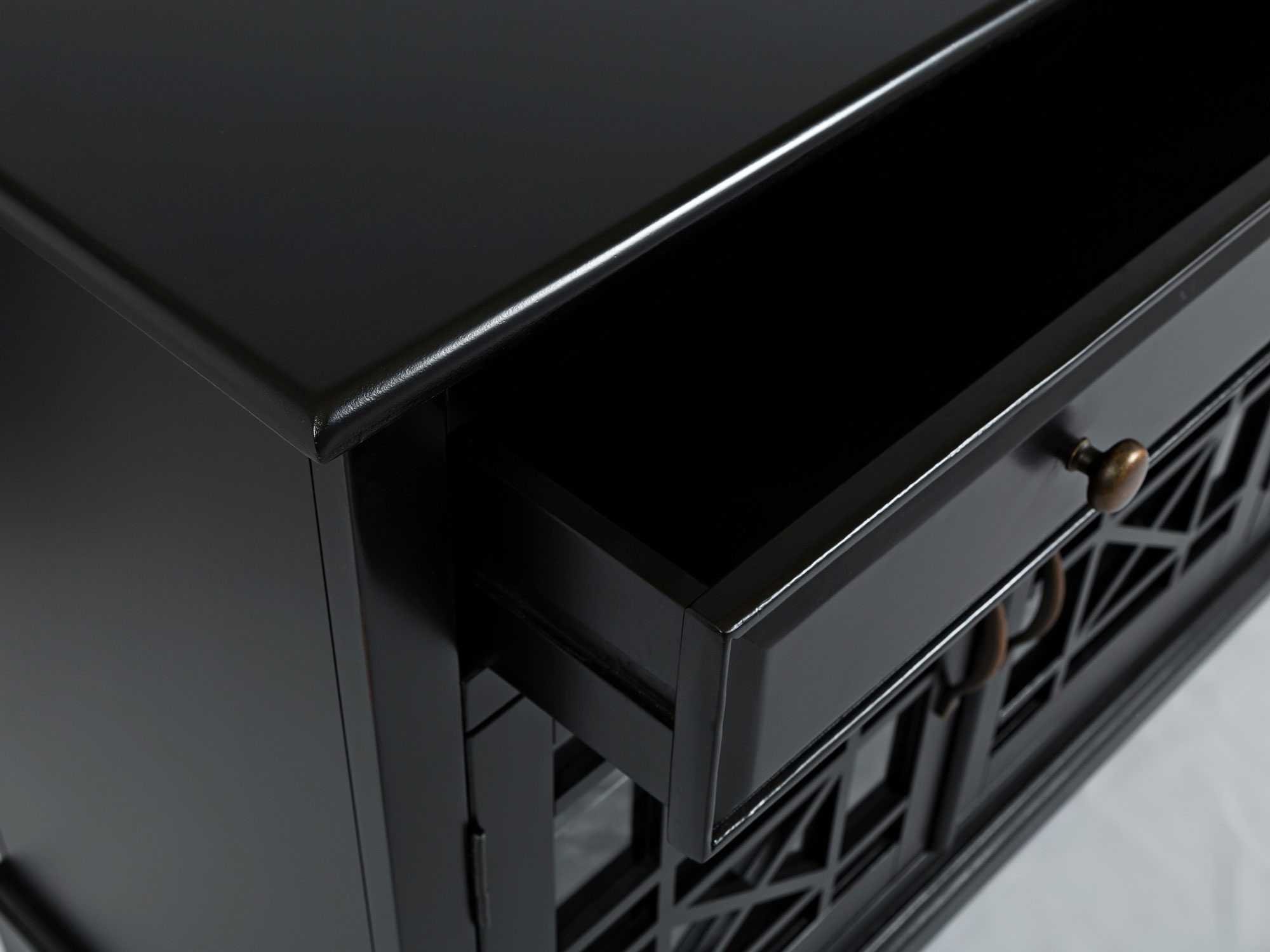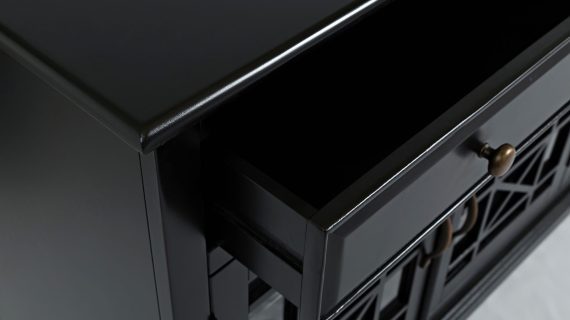- Subtelne frezowane detale oraz praktyczne przechowywanie w jednej przestronnej komodzie
