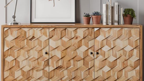 Komoda z naturalnego drewna akacji z intarsją – Avola